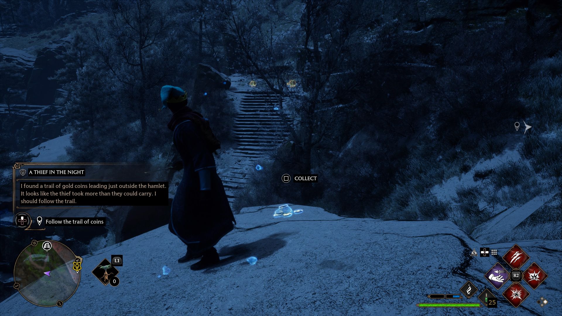 Sometimes the coins don't spawn. It's rare in 2026, but it still happens if the game state gets weird. If you reach the area and there are no coins, fast travel to Hogsmeade and back. That usually resets the cell and forces the gold to render. Also, make sure it is actually night. The quest tracker sometimes stays active during the "dusk" transition, but the coins won't glow properly until the sky is fully dark.