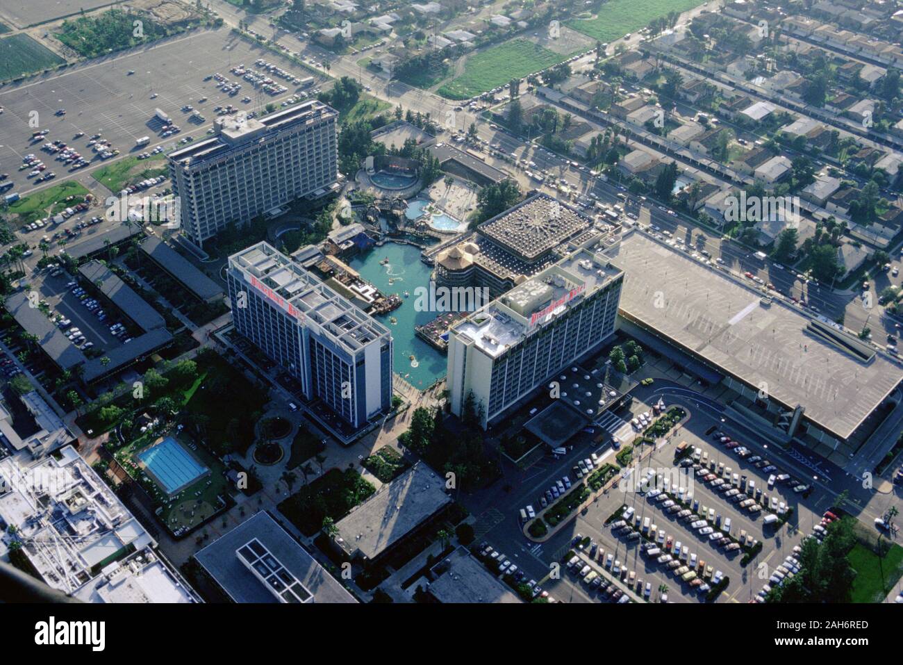 When you find a vintage aerial picture of Disneyland from 1955, the most shocking thing isn't the park; it’s the orange groves. Anaheim was literally just fruit trees. Now? It’s a concrete jungle of hotels and Chick-fil-As. The contrast between the bright, saturated colors of the park and the gray, smoggy grid of Anaheim is jarring. It makes the park look like a literal island.