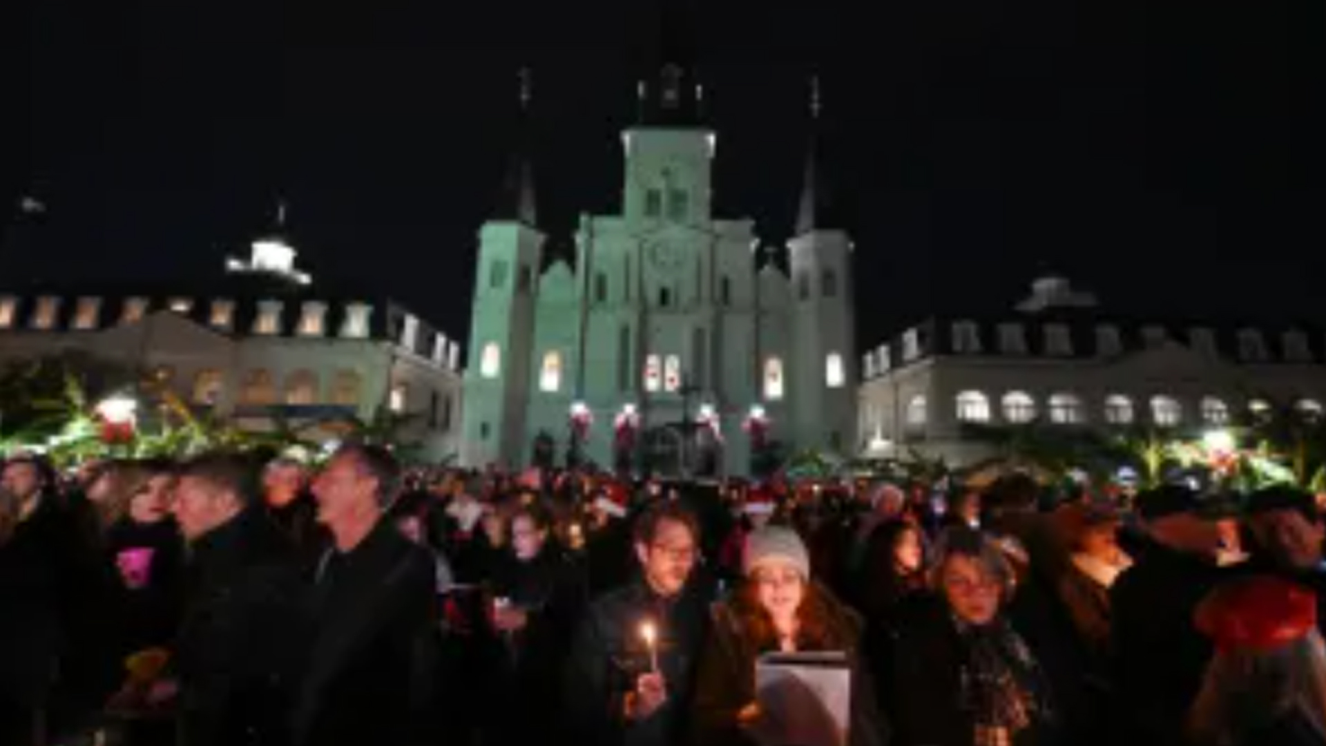 Thousands of people crammed into a gated park, holding tiny white candles that drip wax on their shoes, singing "Silent Night" while the St. Louis Cathedral looms over them like a giant, protective ghost. No microphones for the crowd. No autotune. Just a massive, vibrating wall of human voices.