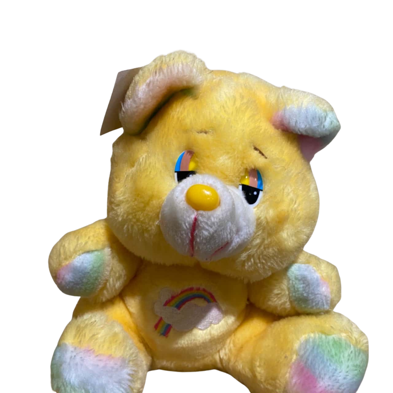 In the original 1980s greeting cards illustrated by Elena Kucharik, Cheer Bear’s rainbow was soft and watercolor-like. It had a hand-painted quality. When the Kenner plush toys hit shelves, that rainbow became a vibrant, embroidered patch. It had to be durable. Kids weren't just looking at these bears; they were dragging them through the dirt and sleeping with them every night.