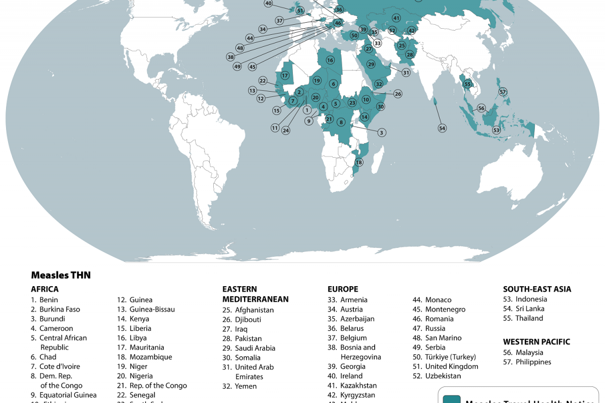 If you're planning to travel, you honestly need to check the CDC’s "Yellow Book" or their travel health notices. The list of countries with measles outbreaks changes monthly.