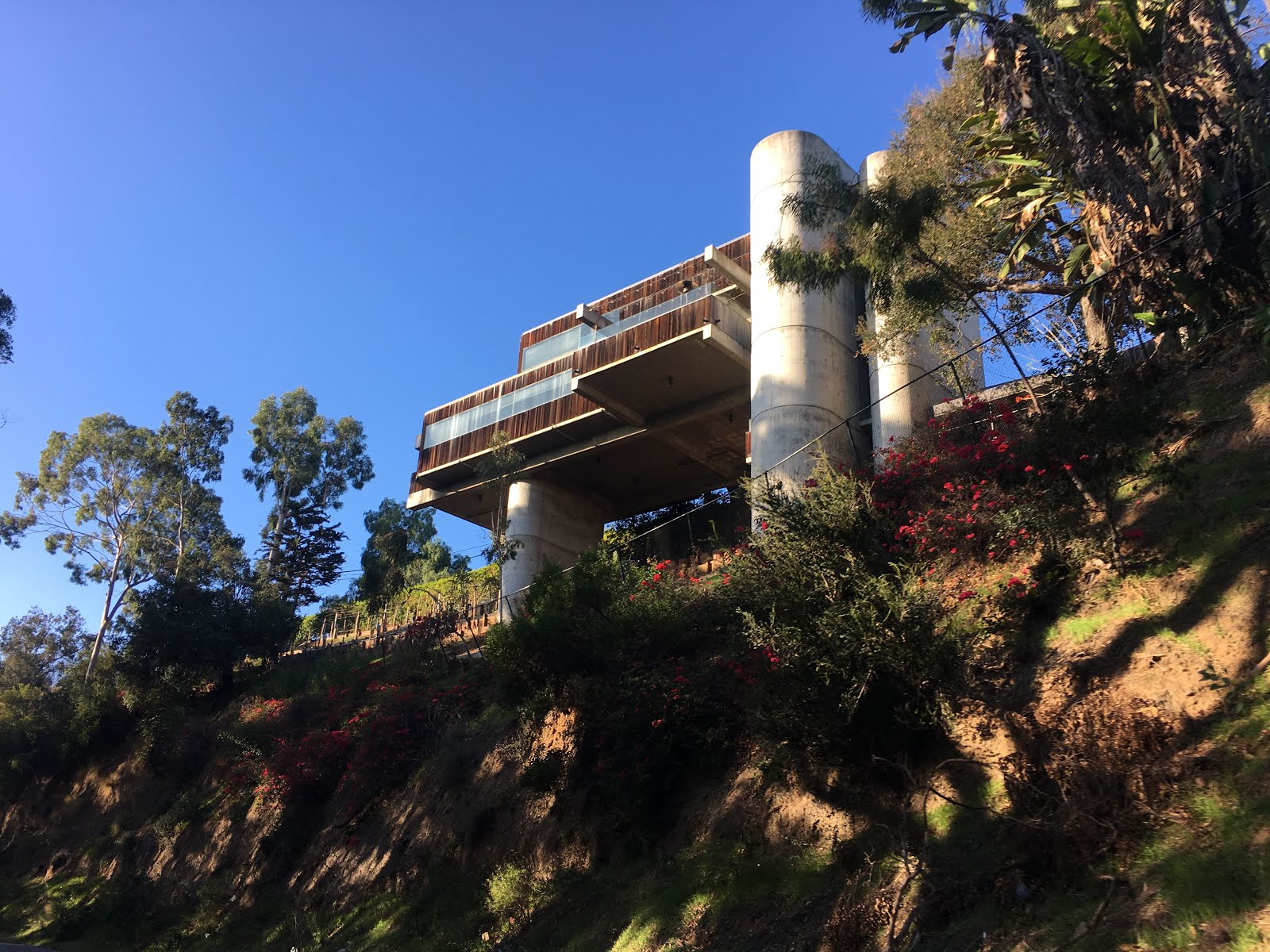 There’s a small pedestrian bridge there. Stand on it. To your back is the wealth and the winding canyons; in front of you is nothing but blue. It’s the ultimate Los Angeles transition.
