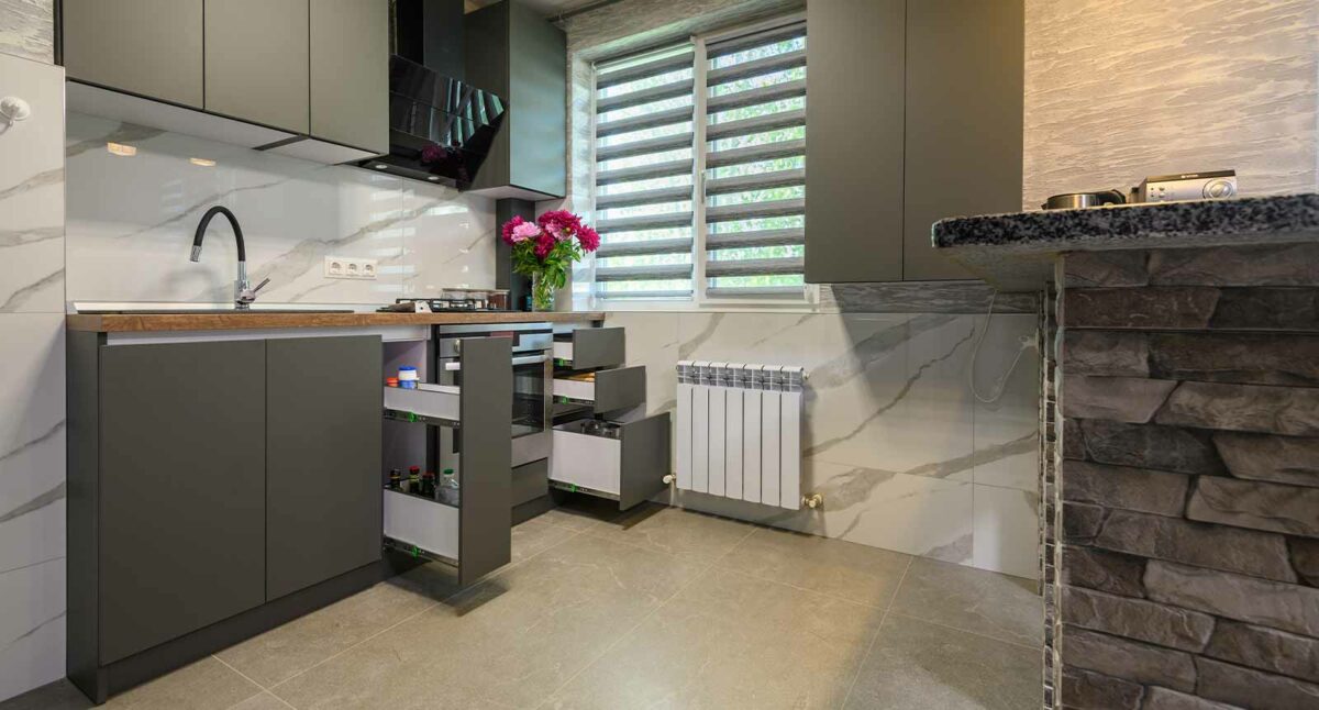 El desorden es el enemigo número uno. En una cocina pequeña, tres tazas fuera de su sitio ya parece que ha pasado un huracán. Por eso, los accesorios interiores son clave. No te conformes con baldas fijas donde las cosas del fondo mueren en el olvido. Usa cajones extraíbles. Todos. Hasta en la despensa.