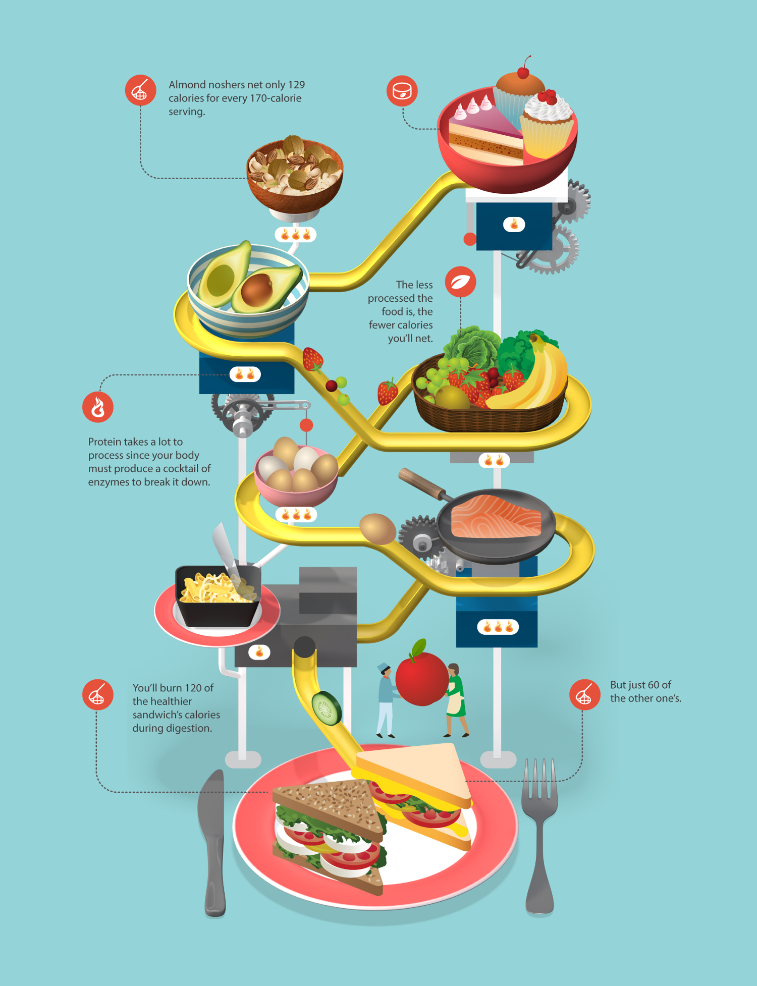 - Eat Enough Protein: Digesting protein takes more energy than digesting fats or carbs. It’s called the Thermic Effect of Food (TEF). Protein also helps preserve that precious muscle mass.