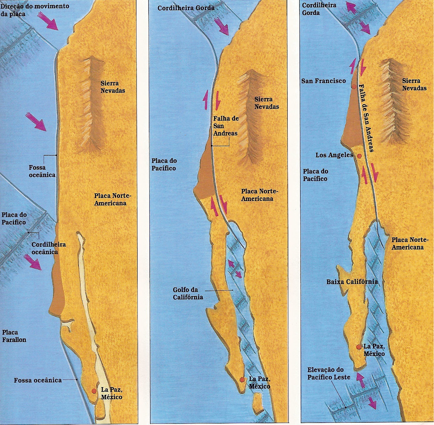 Muita gente ainda acha que a Califórnia vai se soltar do continente e virar uma ilha. Isso é fisicamente impossível. O movimento é lateral, não de separação. Daqui a alguns milhões de anos, Los Angeles e San Francisco serão vizinhas de muro, porque LA está subindo o mapa enquanto SF está descendo.