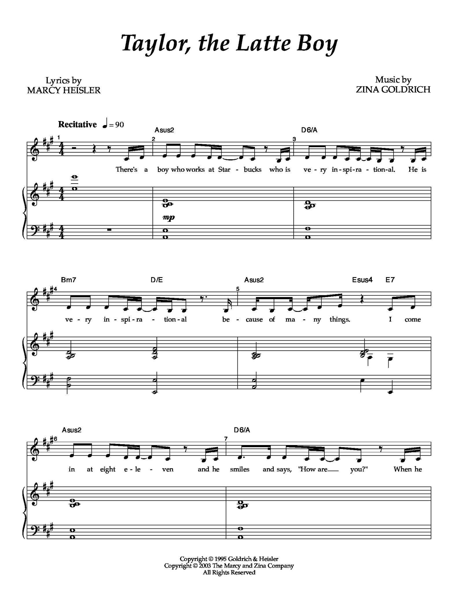 You’re standing in a dive bar or a brightly lit community theater basement. The air smells like stale beer or floor wax. You've got the mic in your hand, and you think, "I’ll do Taylor the Latte Boy." It's cute. It's funny. It’s basically the "Cell Block Tango" for people who drink oat milk. But then the piano intro starts—that bouncy, syncopated Marcy Heisler and Zina Goldrich rhythm—and you realize you’re in trouble.