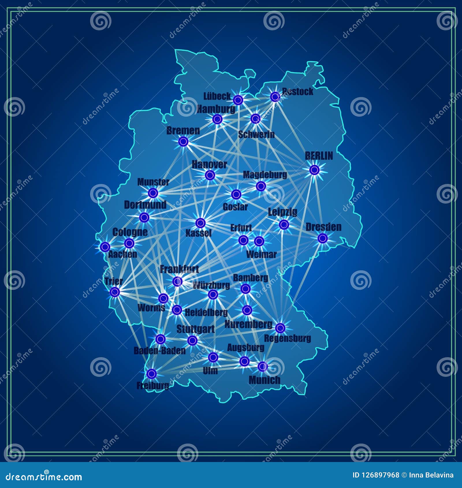 The high-speed ICE (InterCity Express) trains connect the major dots on the german map with cities in a star shape.