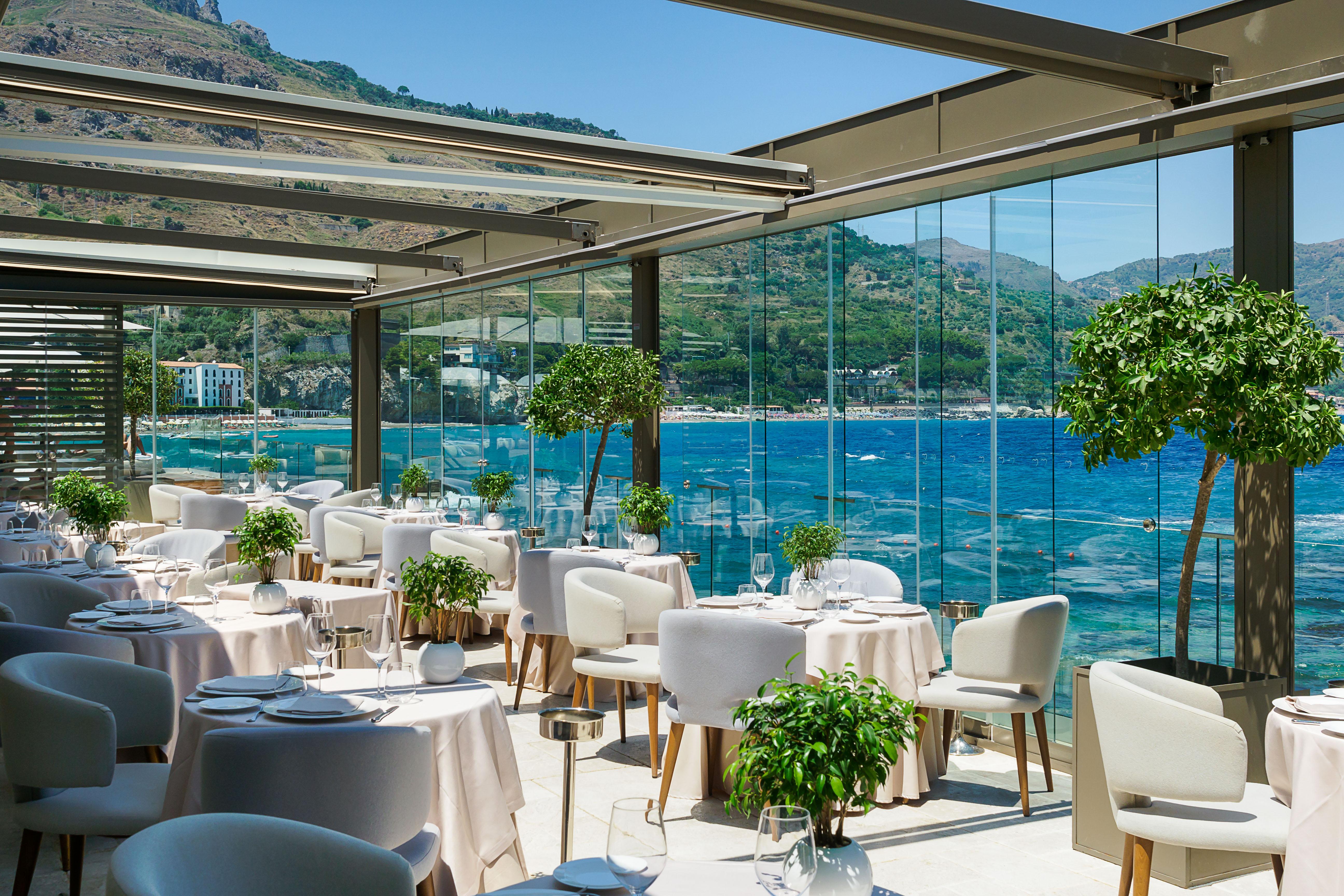 The chef usually leans into traditional Sicilian flavors but strips away the heavy, oily textures you find in the tourist traps uphill. You’re eating outside, feet away from the waves. It’s expensive. Of course it is. But you’re paying for the fact that the fish was likely swimming in that same bay six hours ago.