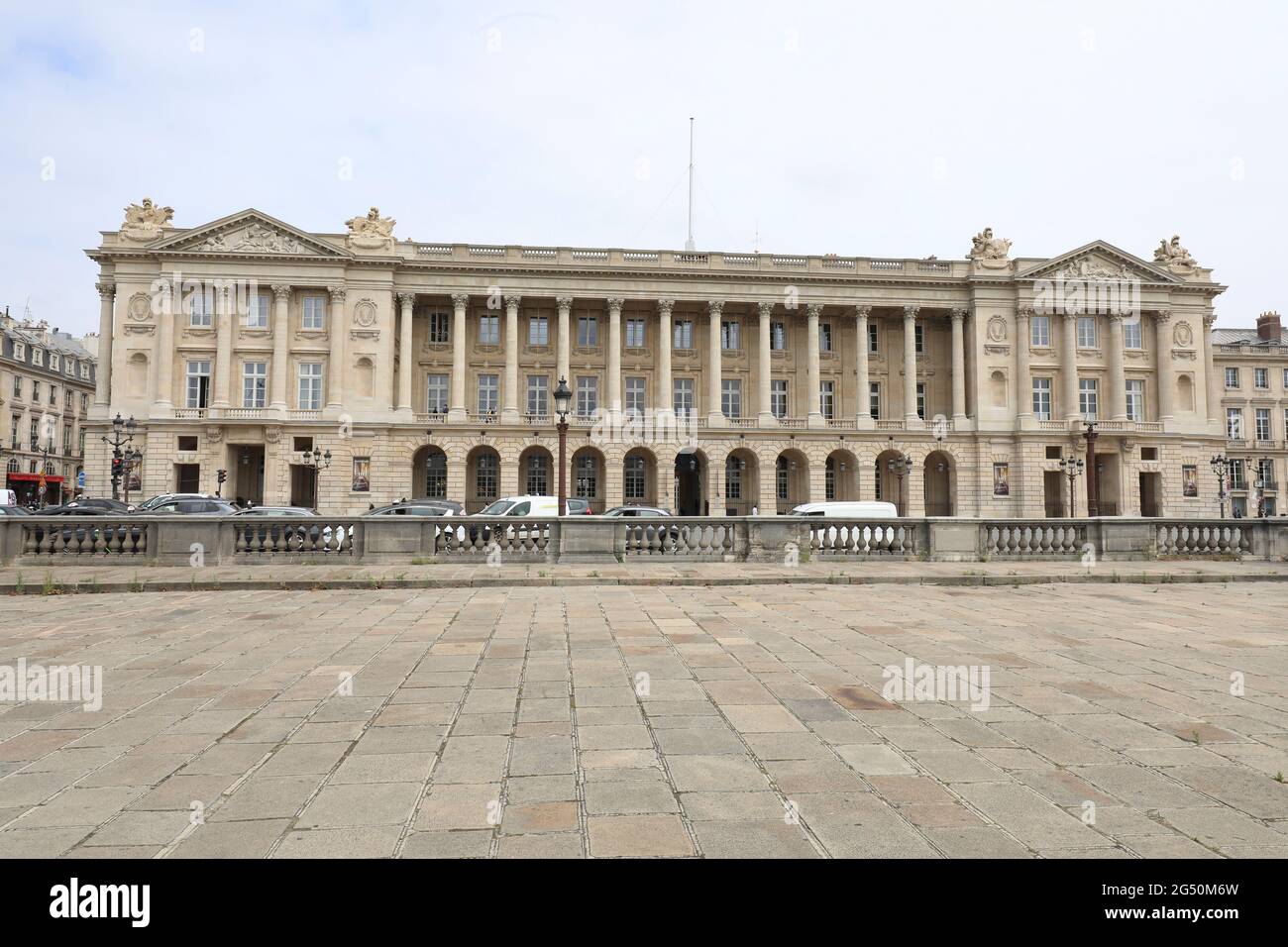 Ange-Jacques Gabriel was the architect behind this masterpiece. He’s the same guy who did the Petit Trianon at Versailles, so he knew a thing or two about "quiet luxury" before it was a TikTok trend. The facade is a masterclass in the Neo-Classical style. Huge Corinthian columns. Deep shadows.