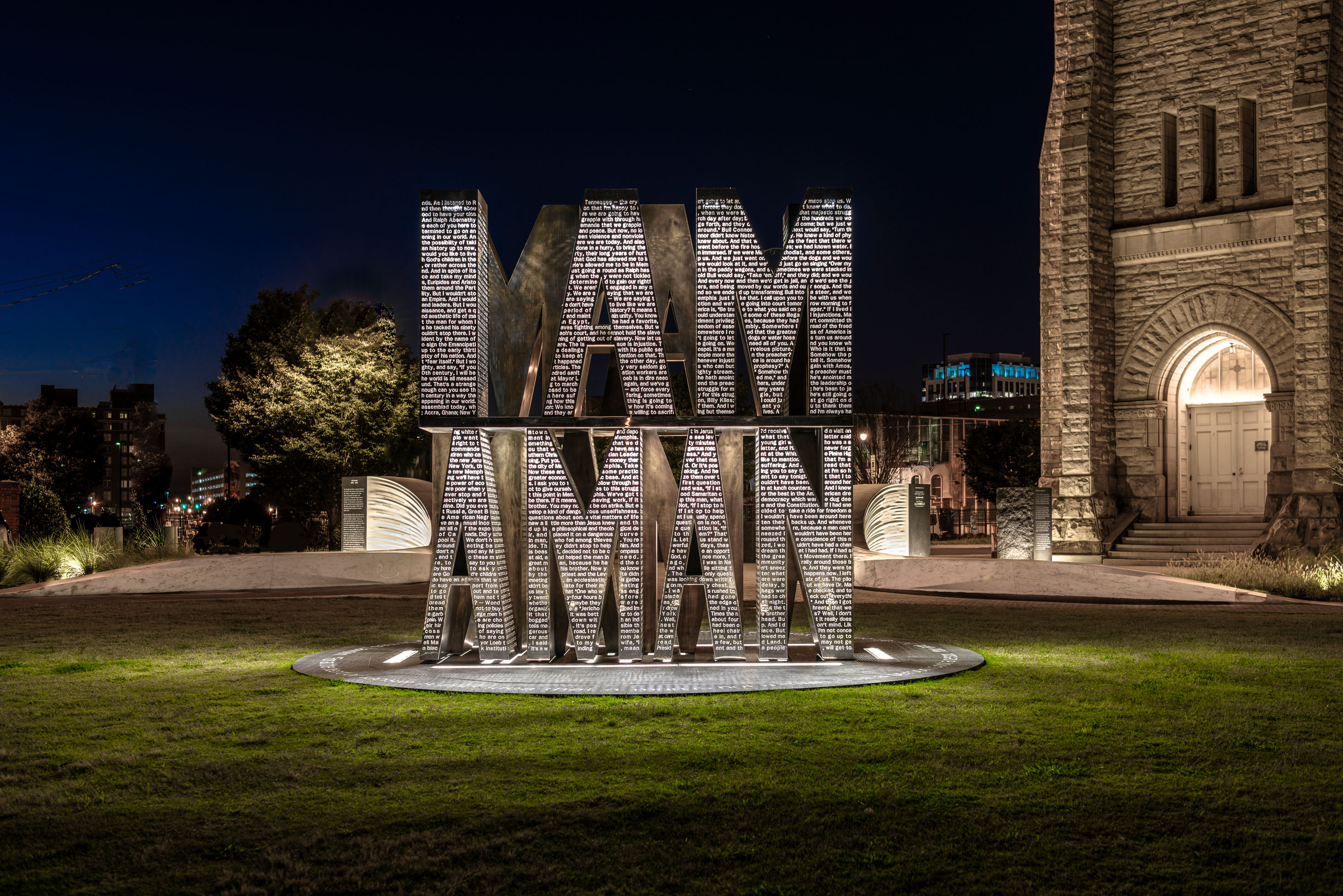 You don't need a ticket. It's free. It’s open 24/7. But honestly, go during the "golden hour" right before sunset. The way the light hits the bronze "I Am A Man" letters makes them look like they’re glowing from the inside.