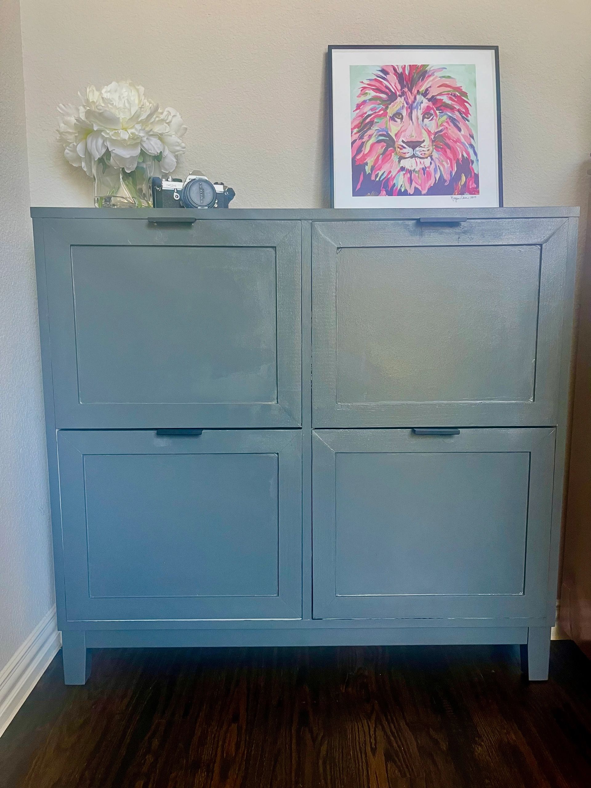 I’ve seen a stunning IKEA STÄLL shoe cabinet hack where the owner painted the whole thing in "Railings" by Farrow & Ball (a deep, moody black-blue) and added a light oak top. It looked like it cost four figures.