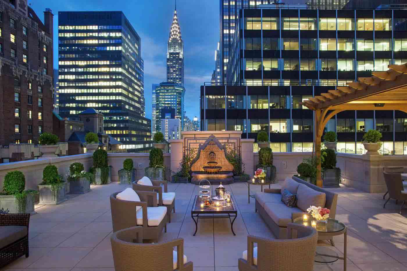 If you really want to see how the other half lives, the specialty suites are where the Barclay flexes. The Harold S. Vanderbilt Penthouse is the crown jewel. It has a 1,300-square-foot terrace with a view of the Chrysler Building that looks like a movie set.