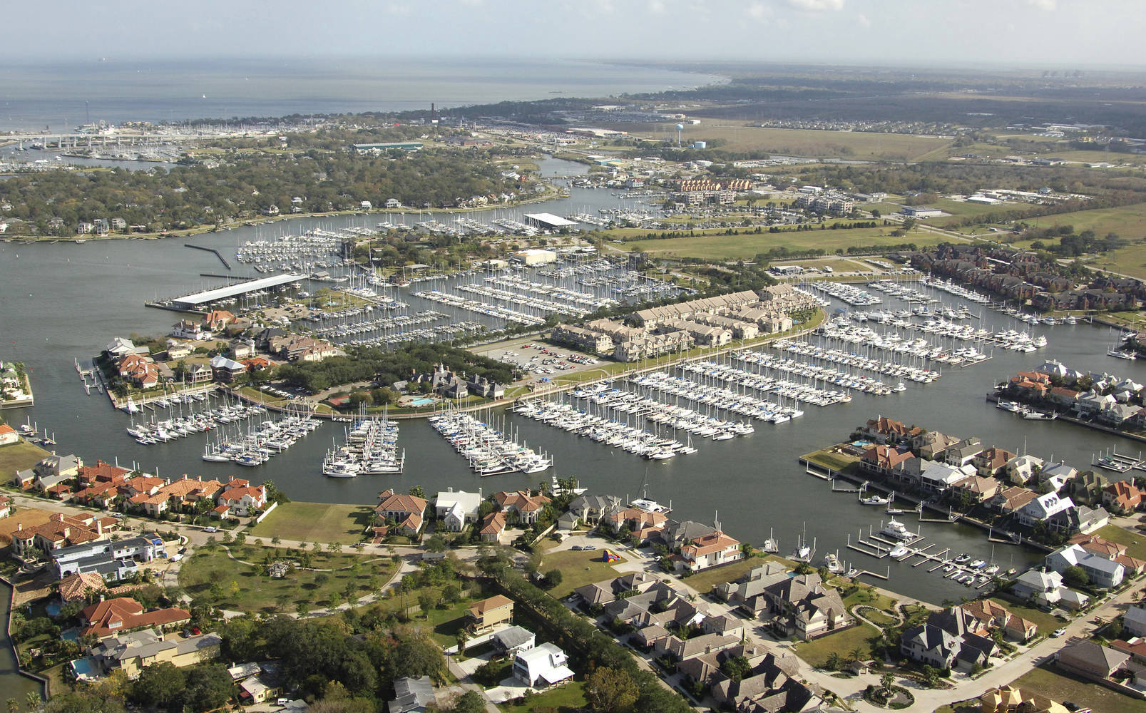 Privacy matters here. You aren't just docking in a public parking lot with water. This is a gated community setup, located at 800 Mariners Dr, Kemah, TX 77565. It sits right on the edge of Clear Creek and Clear Lake, meaning you have a straight shot out to Galveston Bay without weaving through a dozen different channels. That matters when the wind is kicking up and you just want to get home.