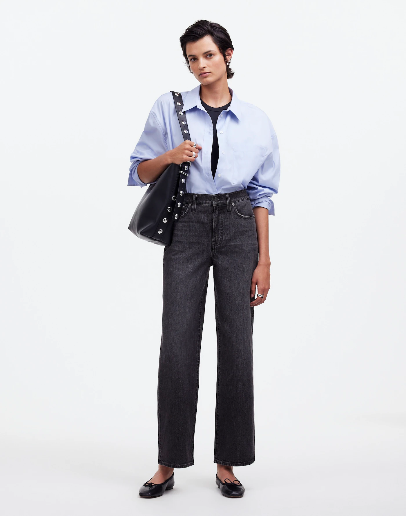 The biggest mistake people make with the Madewell petite perfect vintage wide leg jean is pairing it with an oversized top. If you go wide on the bottom and wide on the top, you disappear.