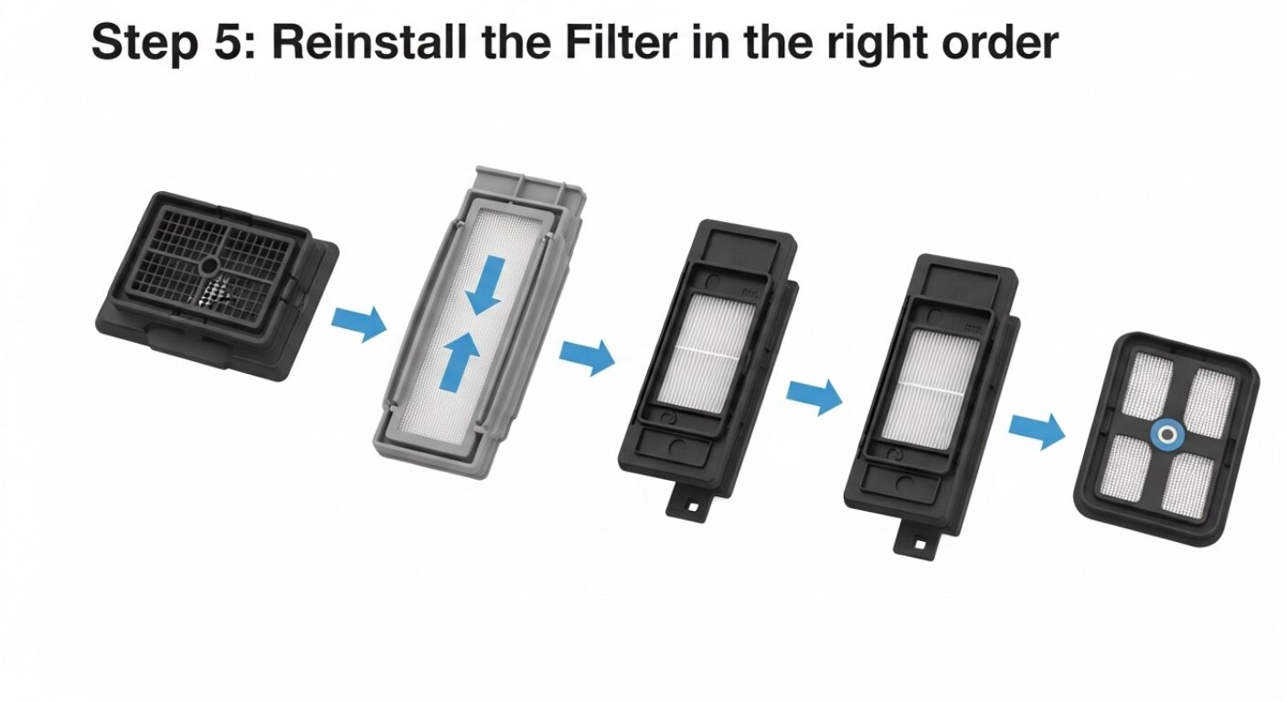 - Every three months: Deep clean the filter with a toothbrush and soak it in vinegar if you see scale. Run a cleaning cycle with a dedicated tablet.