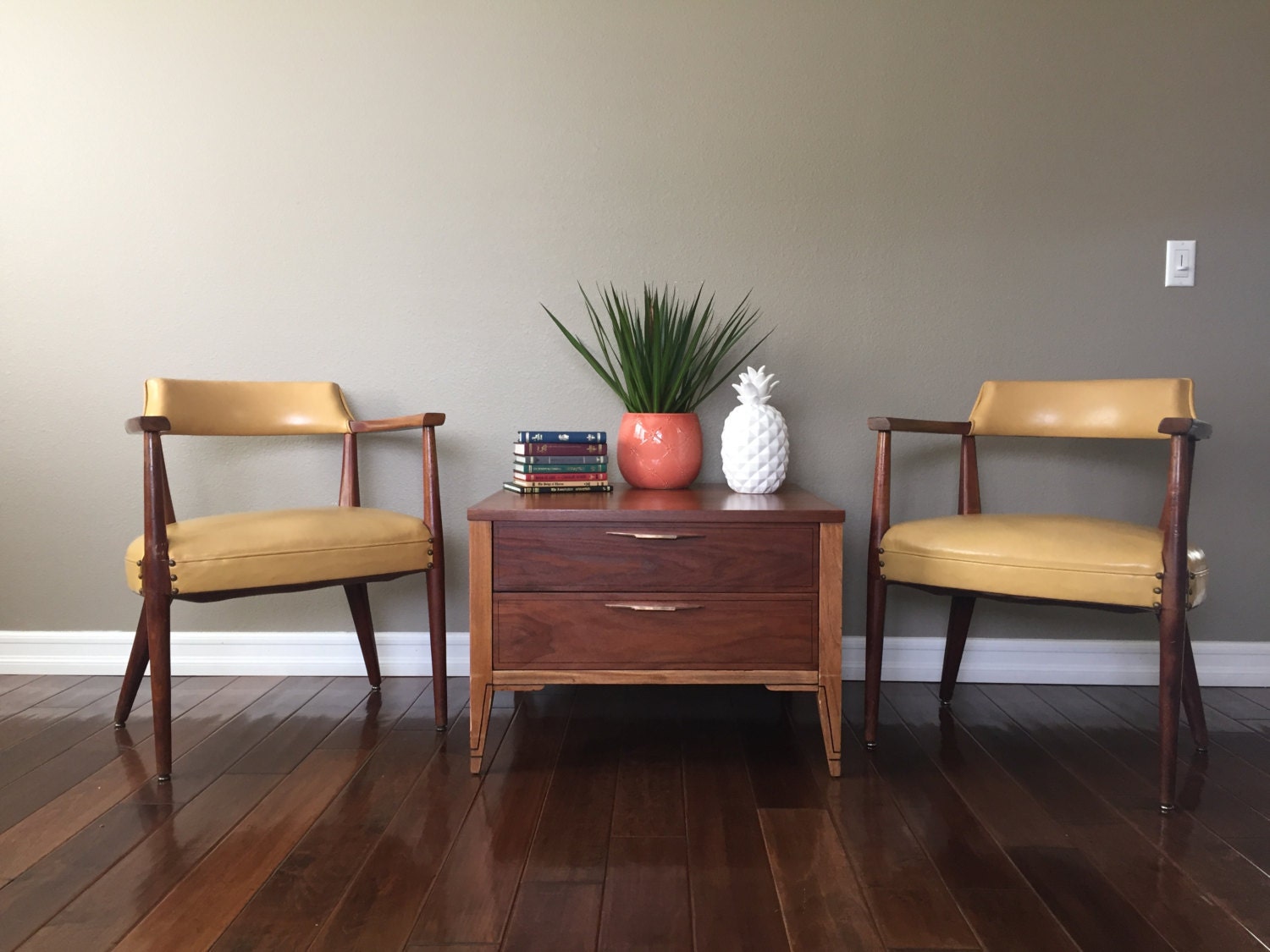 - Measure your space twice. Mid-century furniture is often lower to the ground than modern furniture. If your sofa is high and your leather chair is a low-slung Eames-style piece, the room will look lopsided.