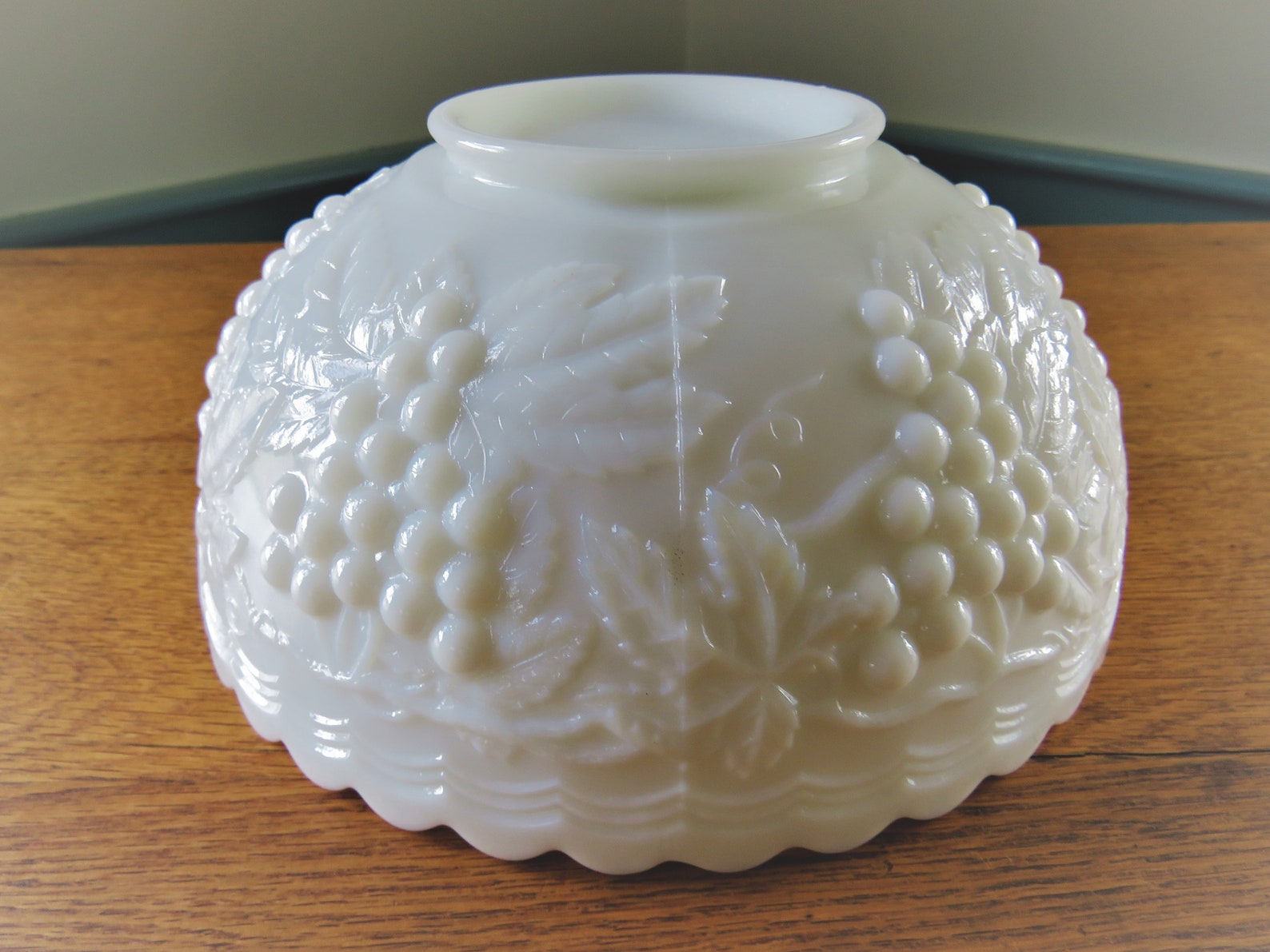 Milk glass isn't actually made of milk, obviously. It’s an opaque glass that gets its signature ghostly white look from additives like tin oxide, antimony, or even arsenic in the very old days. By the time the grape patterns became a household staple in the 1940s, 50s, and 60s, companies like Westmoreland, Fenton, and Imperial Glass were churning these out by the thousands. Yet, despite being mass-produced, they feel special. The "Paneled Grape" or "Beaded Grape" designs are probably the most iconic things to ever come out of a glass mold.