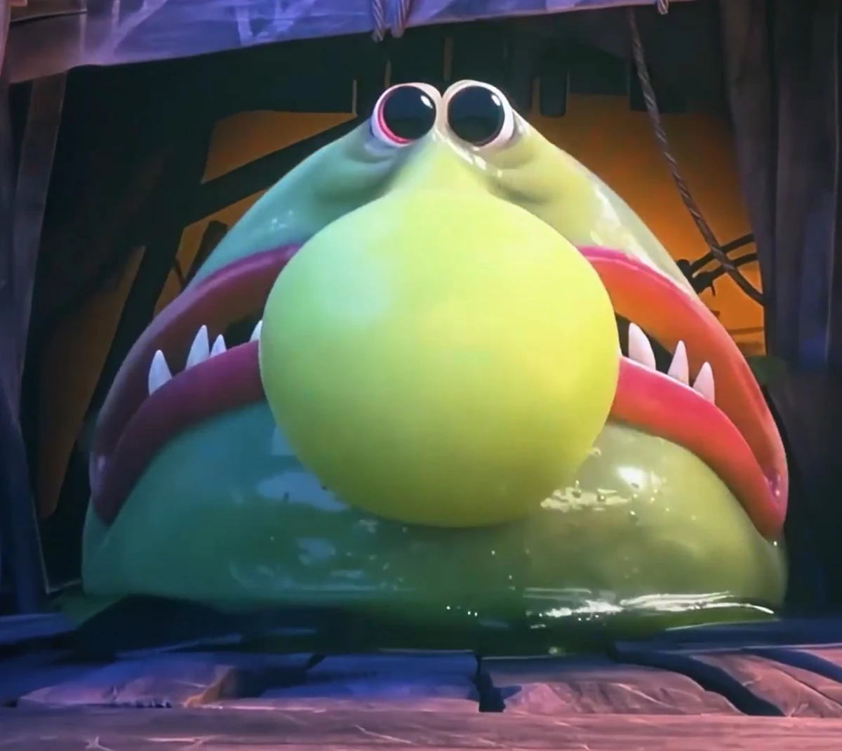 In a scene that’s both weird and strangely adorable, we learn that the green slime he produces acts as an antidote. If you get hit by a Kakamora dart and find yourself paralyzed, you need the blob. It’s a classic "the poison and the remedy come from the same source" trope, but executed with a creature that looks like it belongs in a candy shop.