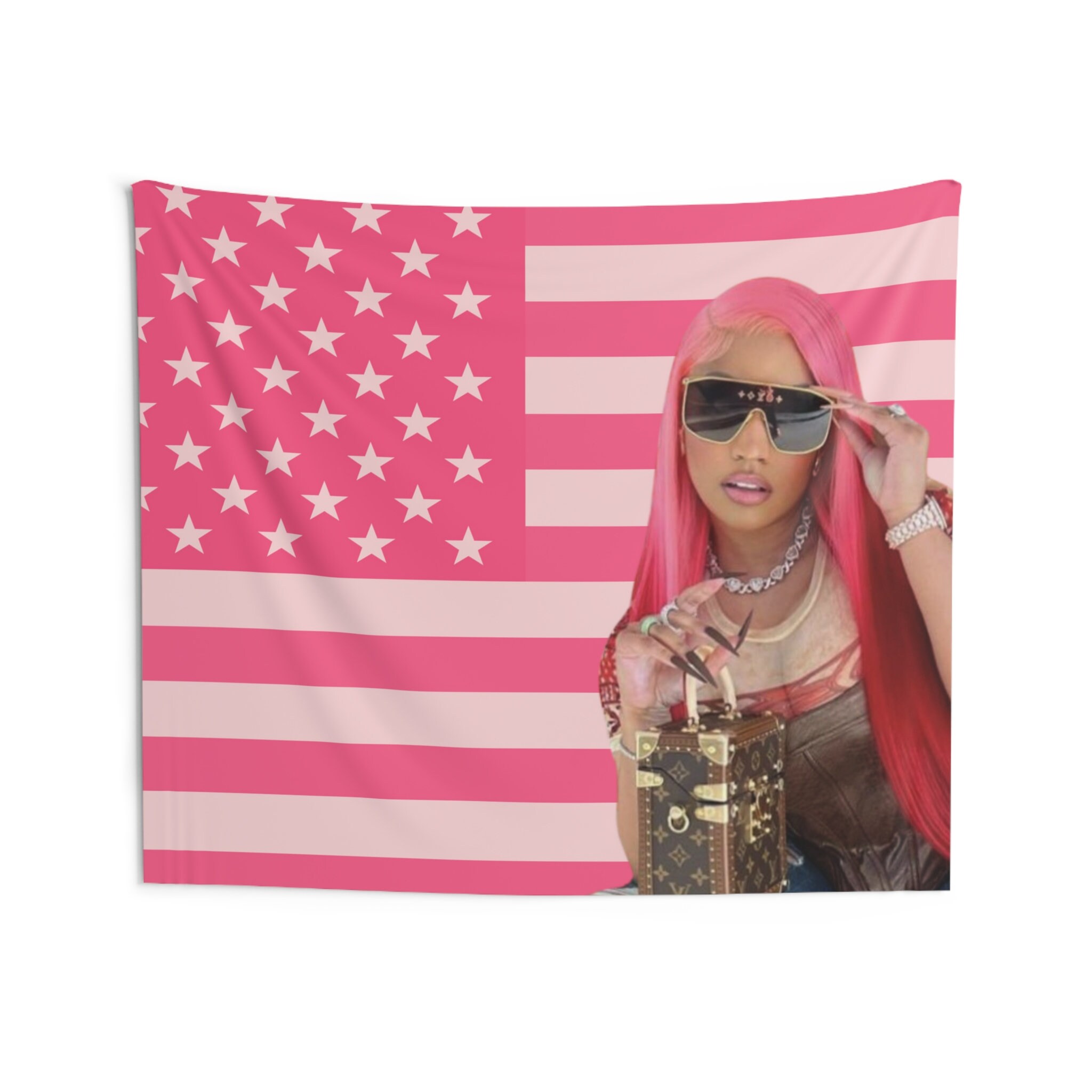 So, if you’ve been anywhere near TikTok or Twitter lately, you’ve probably seen it. That specific image of Nicki Minaj—the one where she’s rocking a blue bikini top, saluting the camera with a massive grin, framed by the stars and stripes. It’s everywhere. It’s on dorm room walls at Harvard, it’s flying from the back of pickup trucks in rural Alabama, and it’s basically become the unofficial mascot of a very specific, very chaotic corner of the internet.