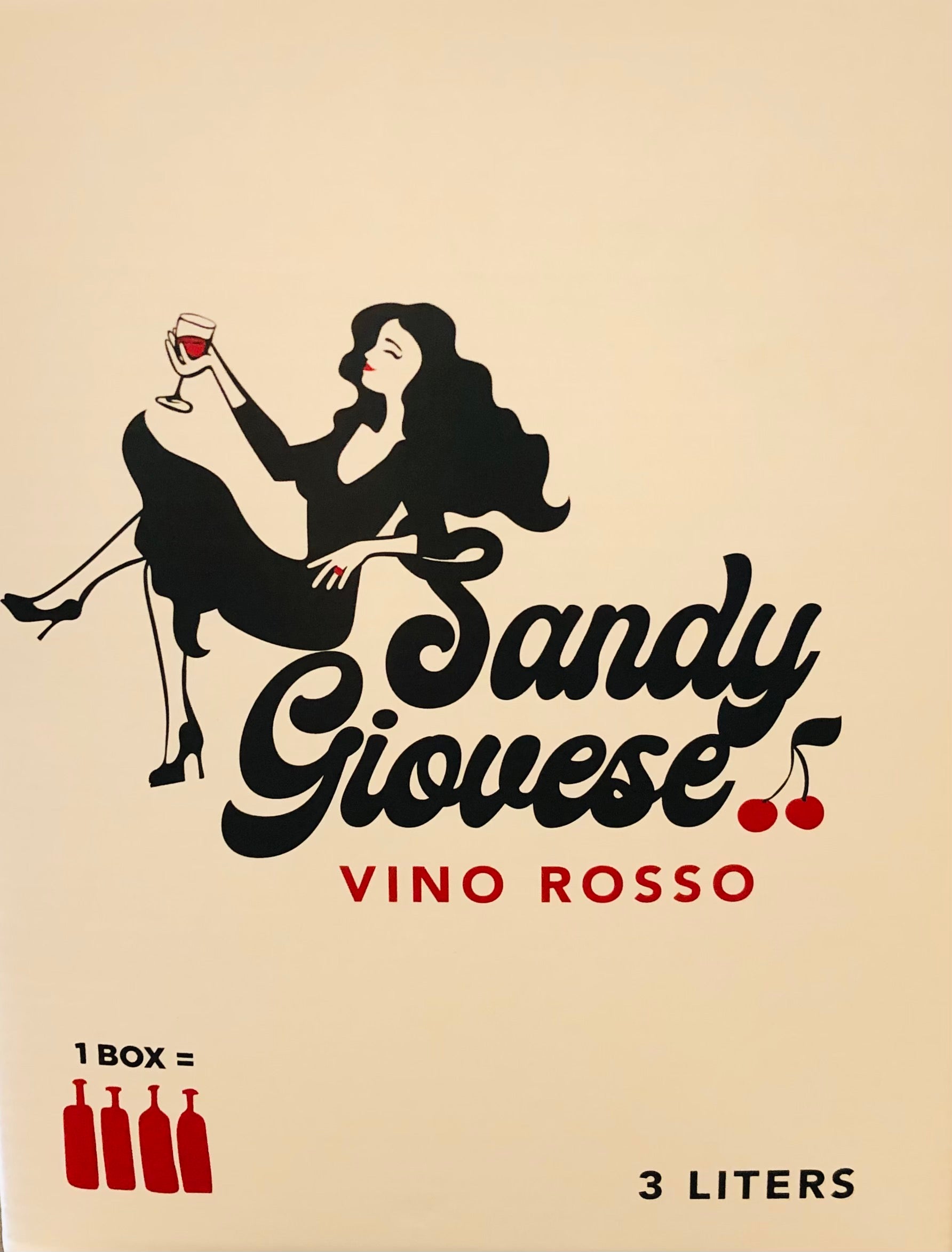 The 3-liter box is equivalent to four standard bottles. If you buy a decent bottle of Sangiovese for $15, you’re spending $60 for the same amount of wine you get in one Sandy Giovese box for roughly $28 to $32.