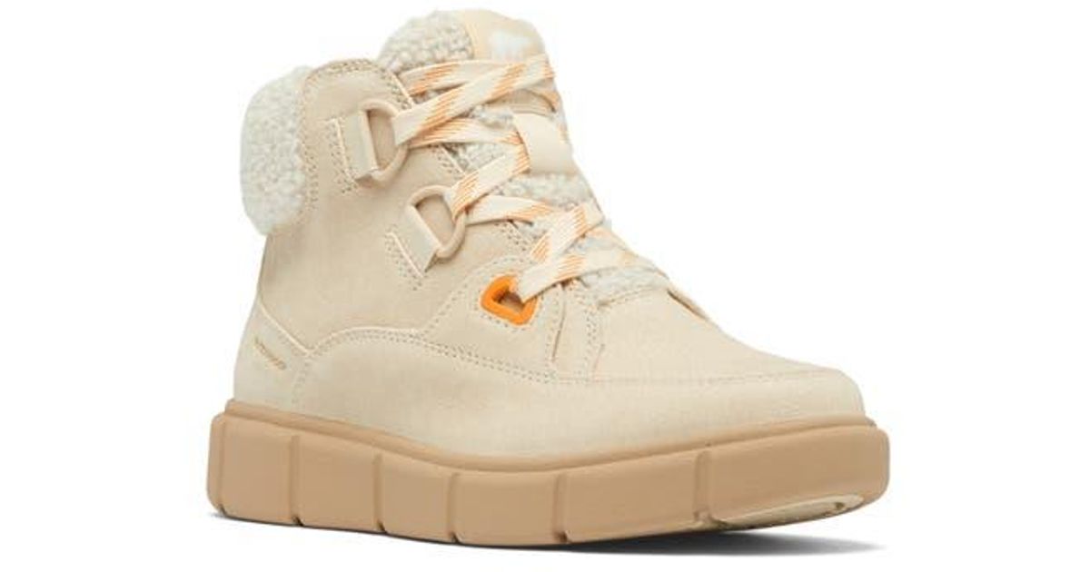 Sorel uses a "waterproof bootie construction." This means there’s a membrane inside. You can walk through puddles. You can stomp through slush. Your feet stay dry. But here is the catch: the laces aren't waterproof. If you’re in deep, melting snow that reaches the tongue, some moisture might sneak through the lace holes eventually. Stick to rain and moderate snow, and you’re golden.