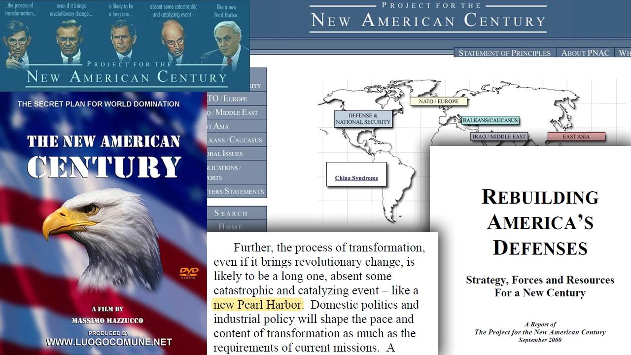 There is one specific line in a 2000 PNAC report titled Rebuilding America's Defenses that gets brought up constantly. The report argued that the process of transforming the U.S. military into a dominant 21st-century force would be a slow one, "absent some catastrophic and catalyzing event – like a new Pearl Harbor."