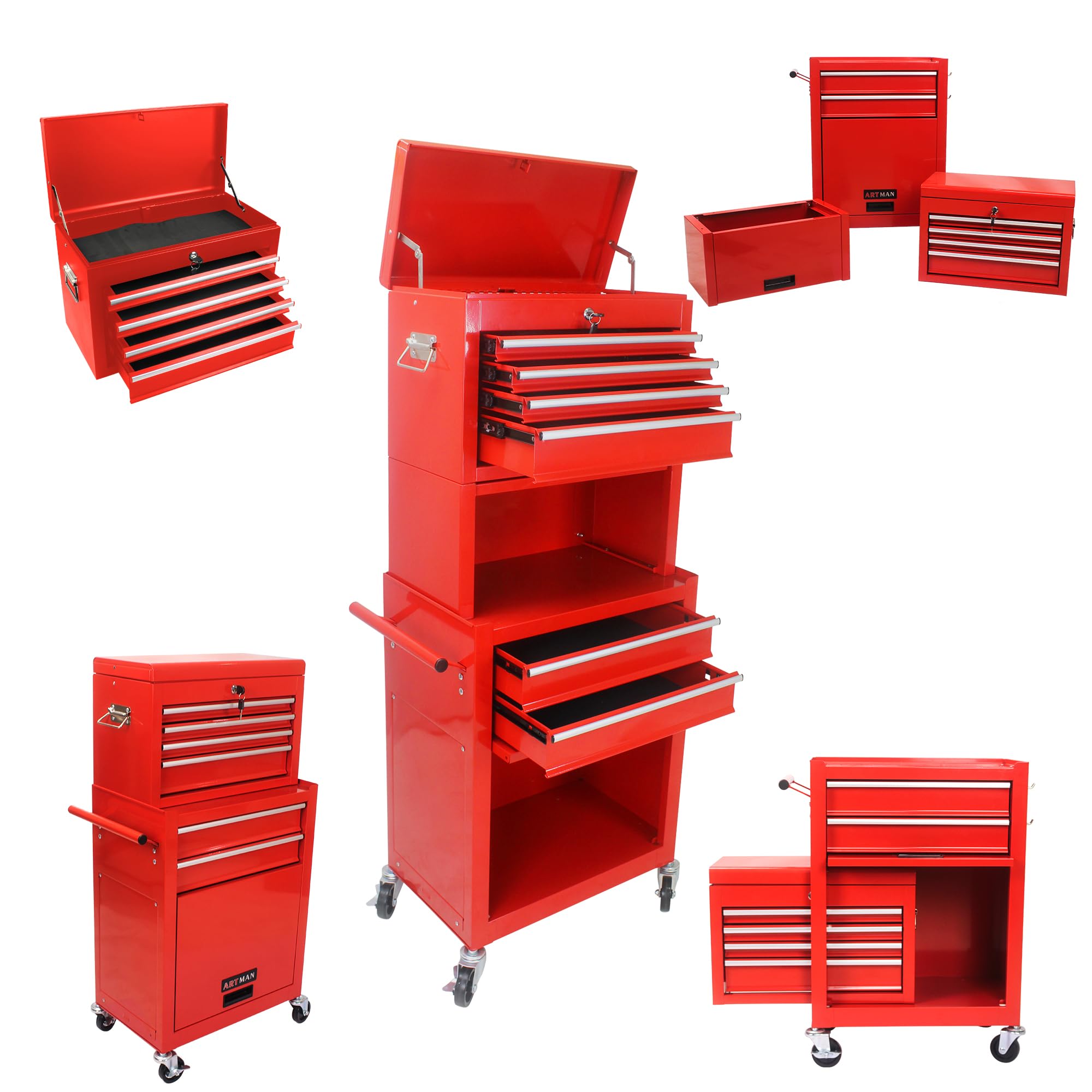 Standard metal chests usually have five to ten shallow drawers. Plastic rolling chests usually have one massive "well" at the bottom. This is great for circular saws and framing nailers, but it sucks for screwdrivers.