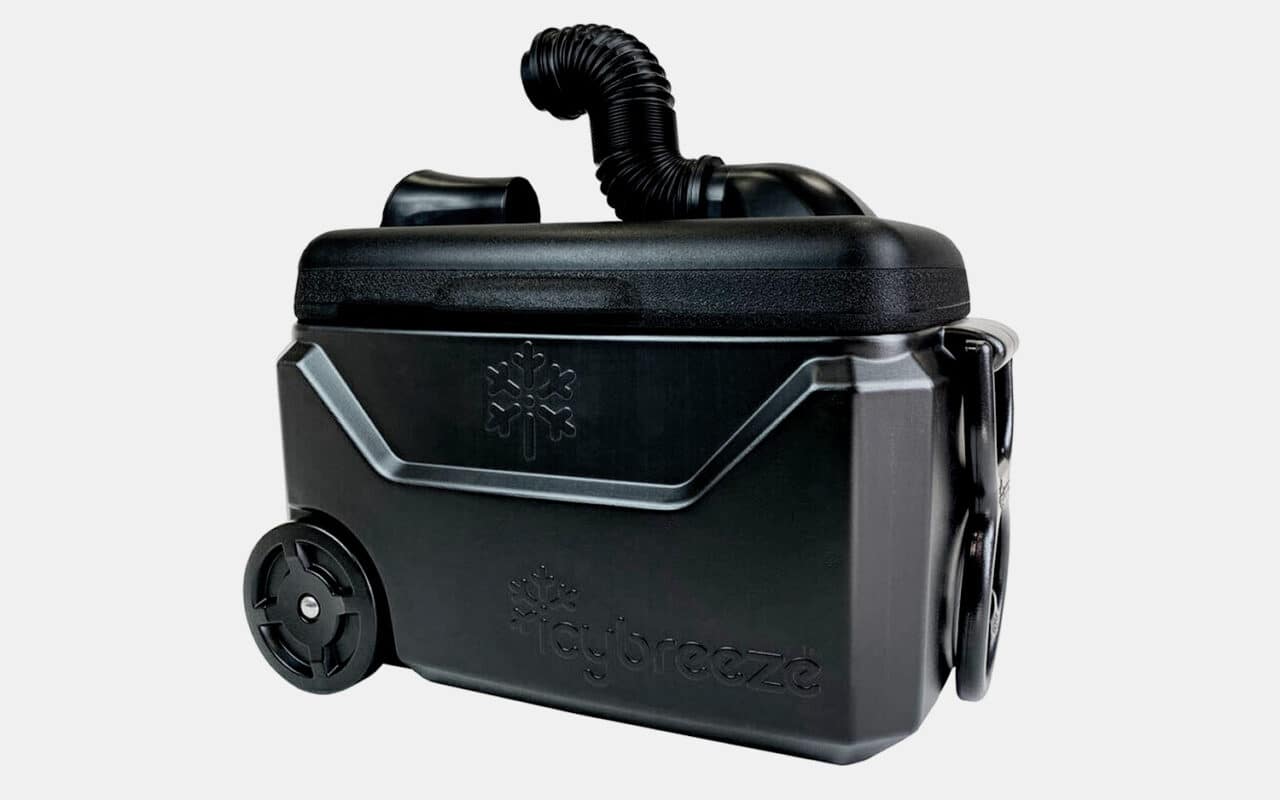 You're at a July baseball game. The sun is absolutely punishing, and the humidity feels like a wet wool blanket draped over your face. You see someone sitting on a bench with a plastic chest that looks like a standard Igloo cooler, but there’s a weird nozzle sticking out of the top blowing a literal jet stream of cold air directly onto their neck. That’s the icy breeze portable air conditioner cooler. It’s one of those "wait, does that actually work?" gadgets that pop up every summer when people realize their $20 battery-powered fan is just moving hot air around.