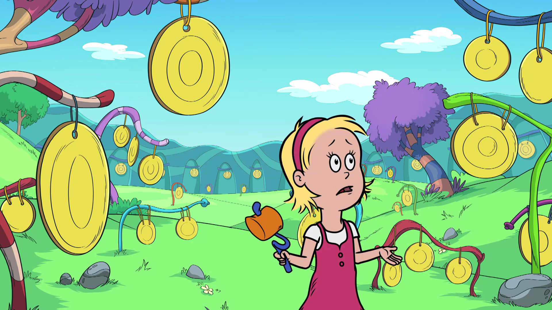Martin Short voices the Cat. It’s a choice that feels chaotic but perfectly fits the Seussian vibe. The show isn't just a fever dream of primary colors; it’s a calculated, PBS-backed engine for STEM education. While the original Dr. Seuss books were mostly about wordplay and causing a bit of harmless domestic mayhem, the TV series pivots hard toward "inquiry-based learning." Basically, Sally and Nick have a question—like why birds migrate or how bees make honey—and the Cat shows up in the Thinga-ma-jigger to whisk them away to some exotic locale like the "Belly-Up-Go-Go" or the "Forest of Ferns."