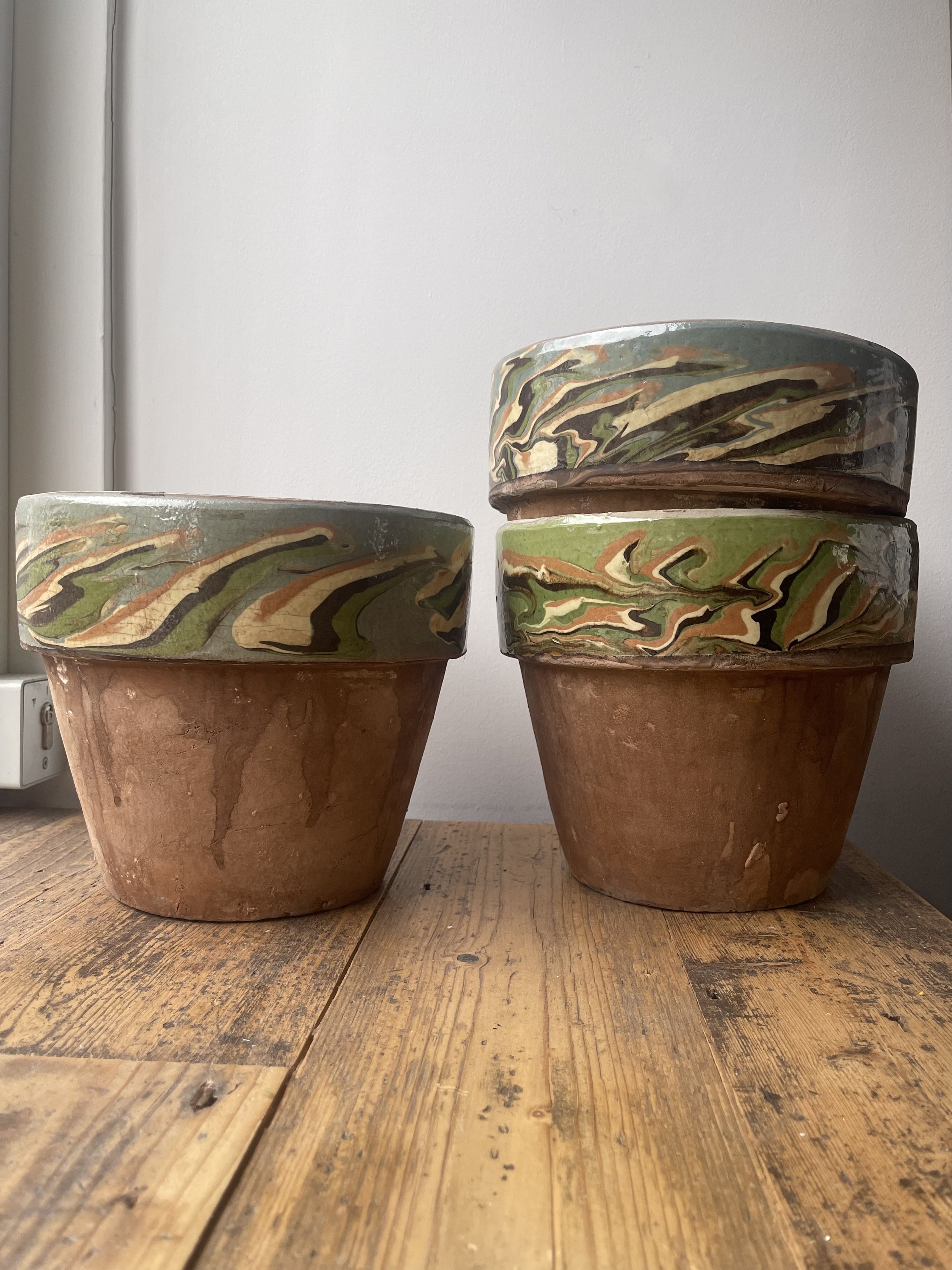 When you find a pot with a thick, chalky crust, you’re looking at a history of Every. Single. Watering. Those salts migrate through the porous walls and crystallize on the outside. It’s a filtration system. Experts like the folks at Guy Wolff Pottery—who are famous for recreating historical techniques—often point out that the "bloom" on a pot is a sign of its health. If a pot doesn't patina, it isn't breathing.