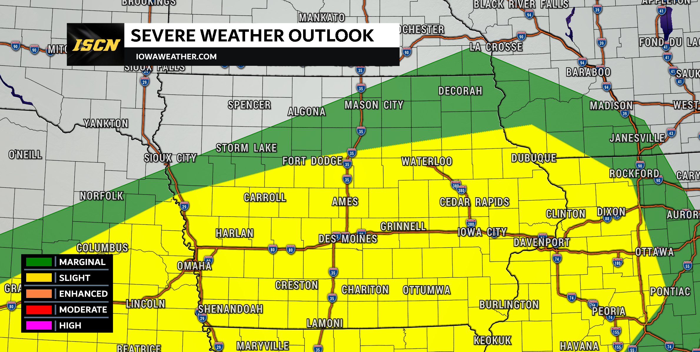 Check the National Weather Service's Davenport office for the most accurate regional warnings before any long drive.