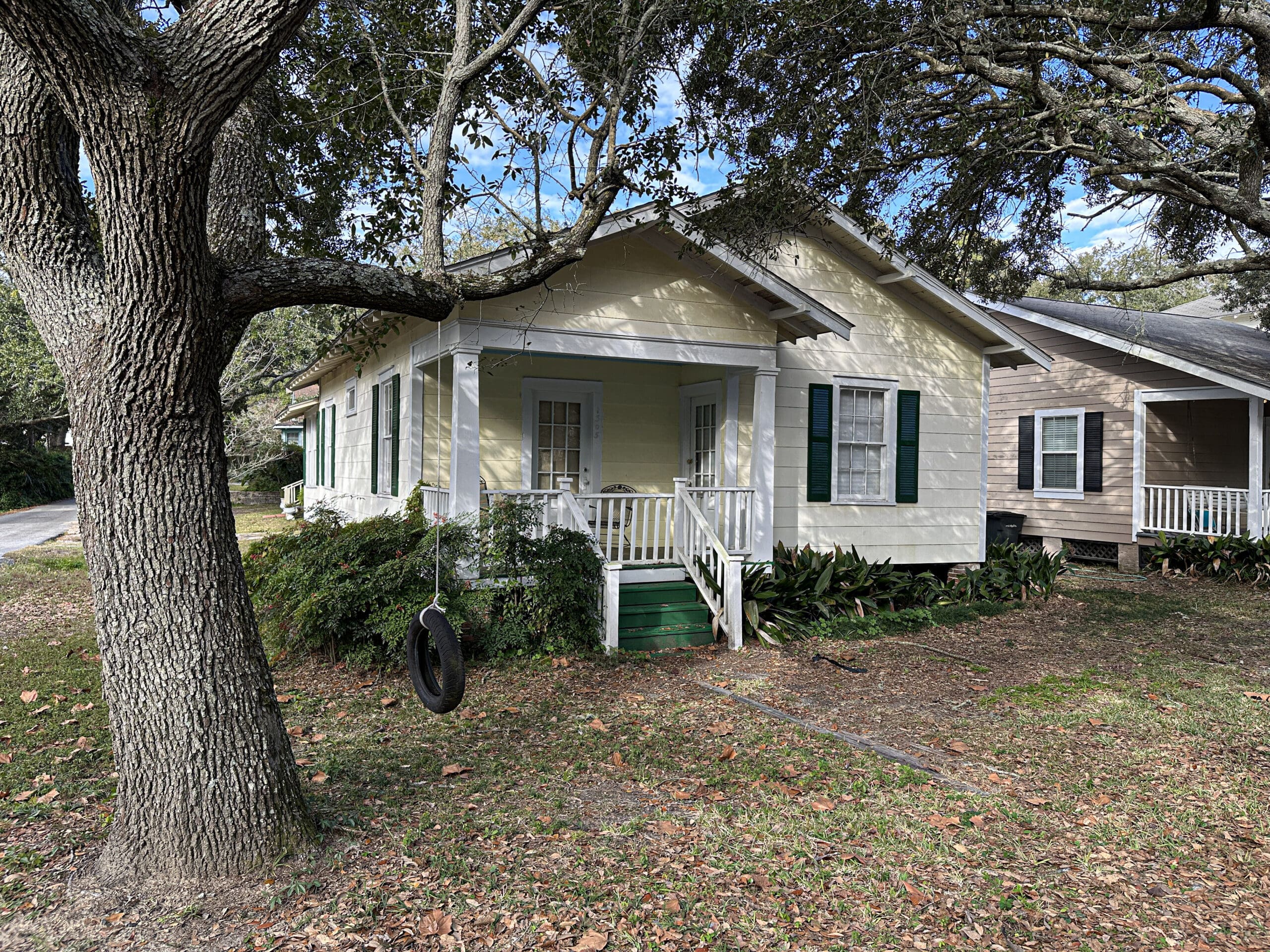- The street is lined with mature trees, giving it that heavy, shaded Alabama feel.