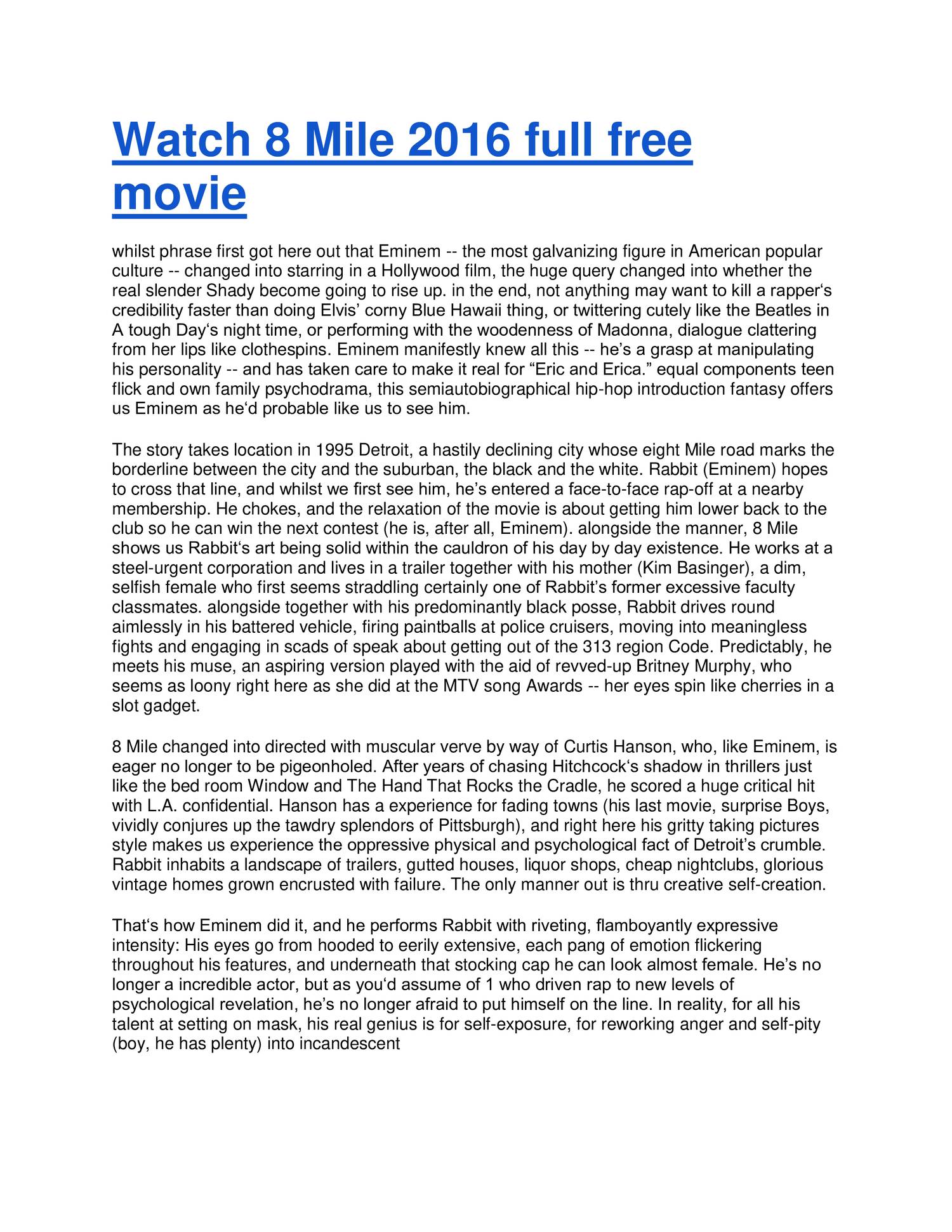 If you are hunting for the best way to watch this, do not settle for a standard definition (SD) stream. 8 Mile was shot on 35mm film by cinematographer Rodrigo Prieto. If you watch it on a low-res YouTube rip, you're missing the grain and the texture of the Detroit streets.