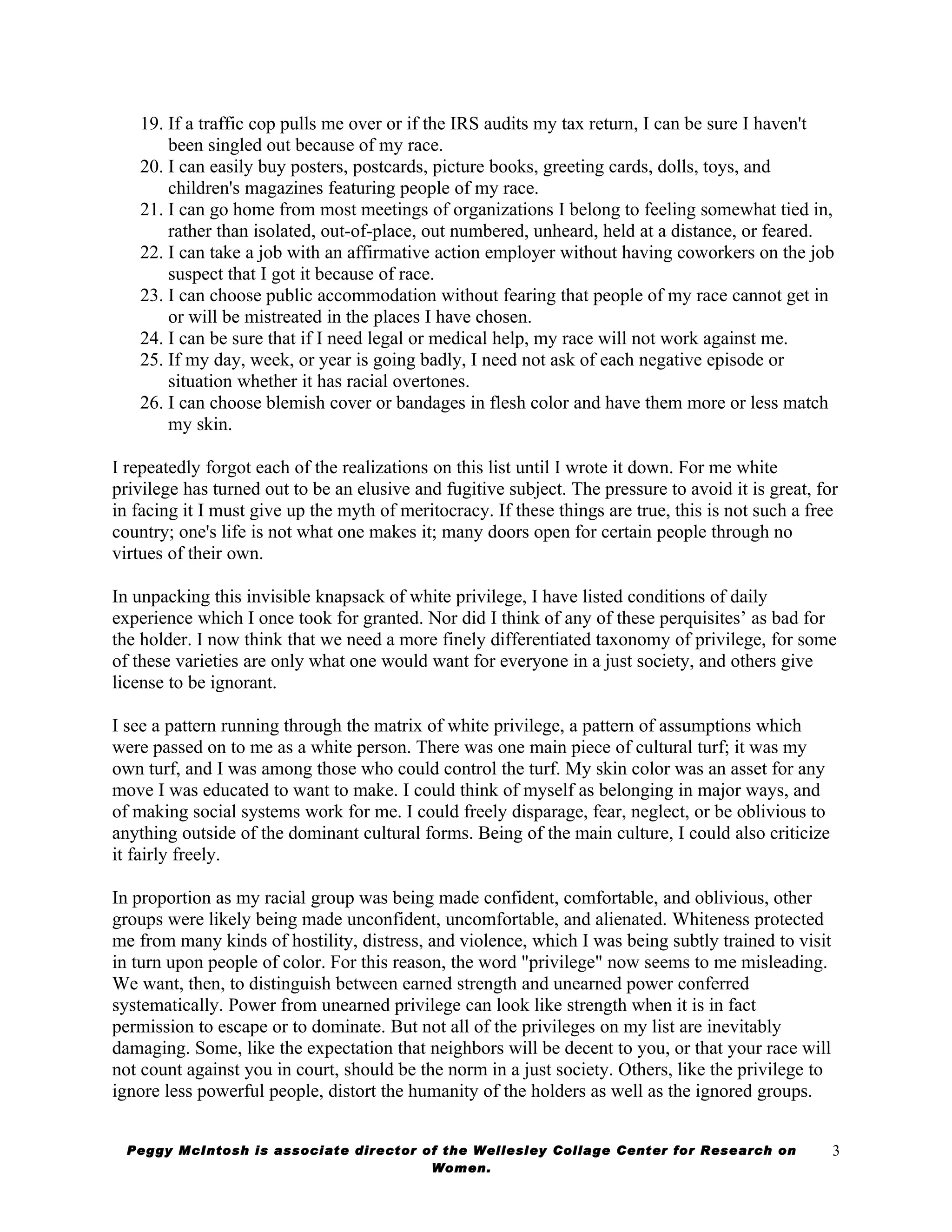 Privilege is a heavy word. It sounds like yachts and trust funds. But for McIntosh, it was about the mundane. It was about being able to go shopping without being followed. It was about seeing people of your race widely represented in media. It was about the simple, quiet luxury of not having to think about your race every single time you stepped out the front door.