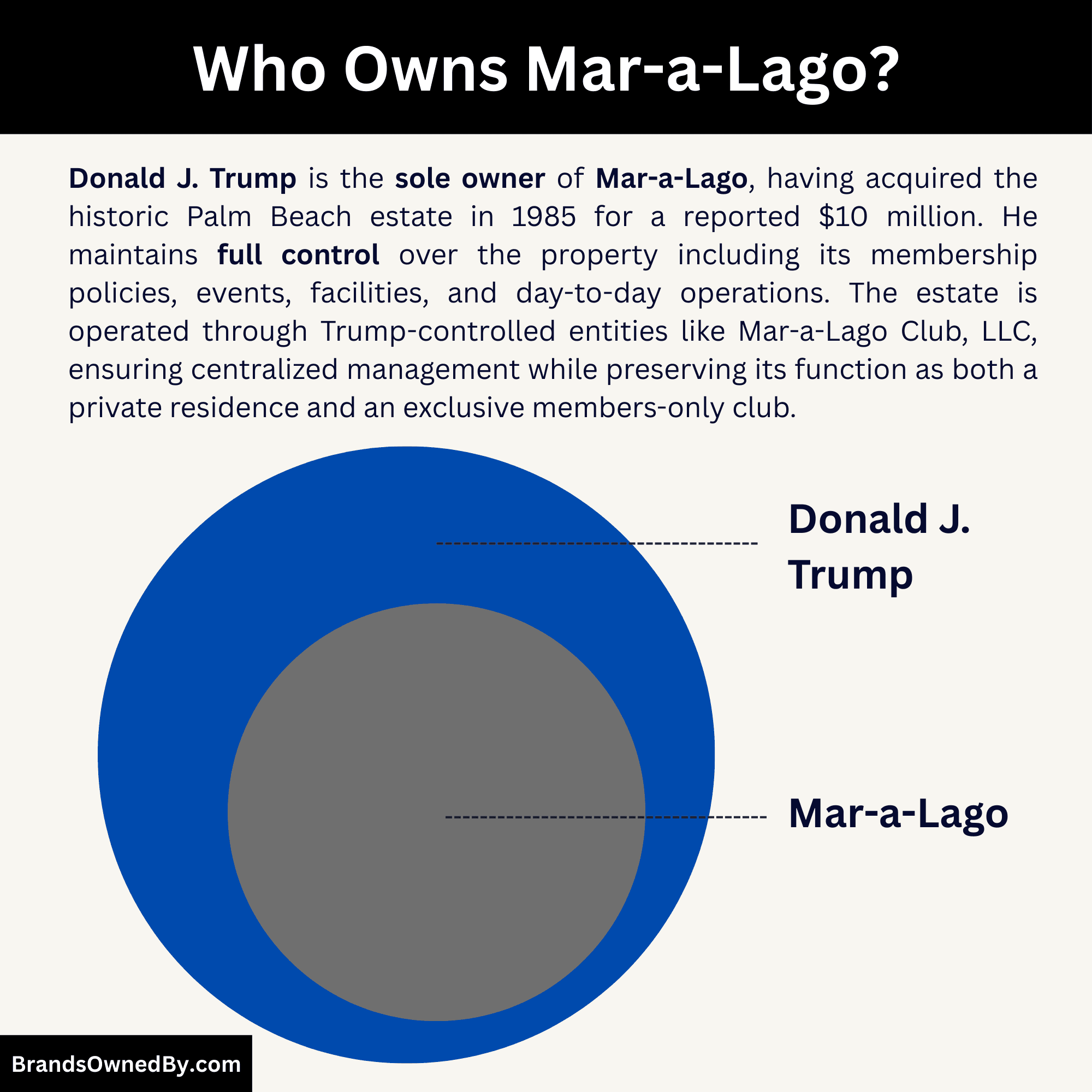 - 1985–Present: Donald Trump (Purchased for $7M–$10M).