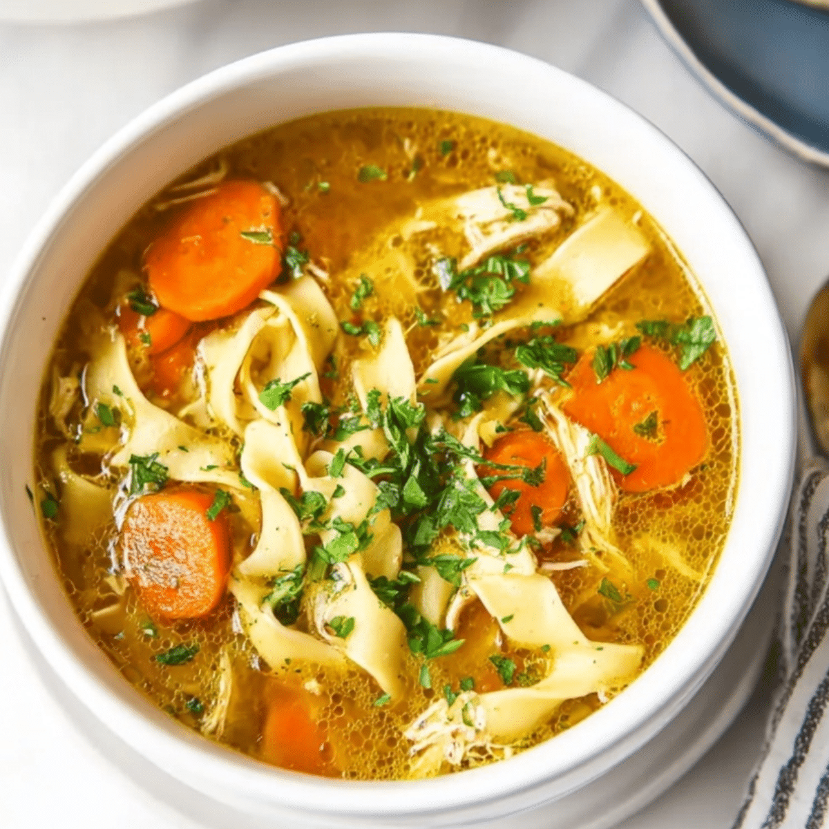 The wide, flat surface area of an egg noodle is designed to catch the broth. It’s like a little edible handle for the liquid. When you lift a spoonful of easy chicken noodle soup with egg noodles, the noodle should be draped over the spoon, carrying drops of golden broth and bits of parsley with it. It’s about the "haul."
