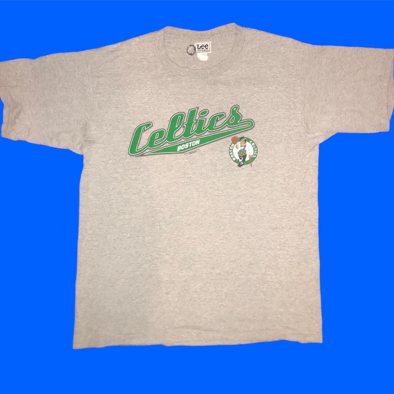 In the early 90s, brands like Magic Johnson Ts and Nutmeg went wild. They didn't just put a logo on the chest. They put a massive, wrap-around graphic of the Boston skyline with the Leprechaun spinning a ball. These are loud. They're obnoxious. They are incredibly expensive right now. You’re looking at $150 to $300 for a pristine Nutmeg Mills Celtics shirt in a size XL.