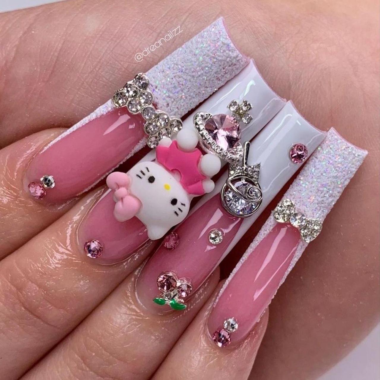 Sanrio’s popularity has spiked by over 30% in search interest over the last two years, largely driven by Gen Z’s reclamation of early 2000s "mall goth" and "soft girl" aesthetics. It’s a weirdly versatile look. You can go "Hardcore Kitty" with black tips, 3D spikes, and silver chains, or you can go "Coquette Kitty" with soft pastel pinks and tiny pearl accents.