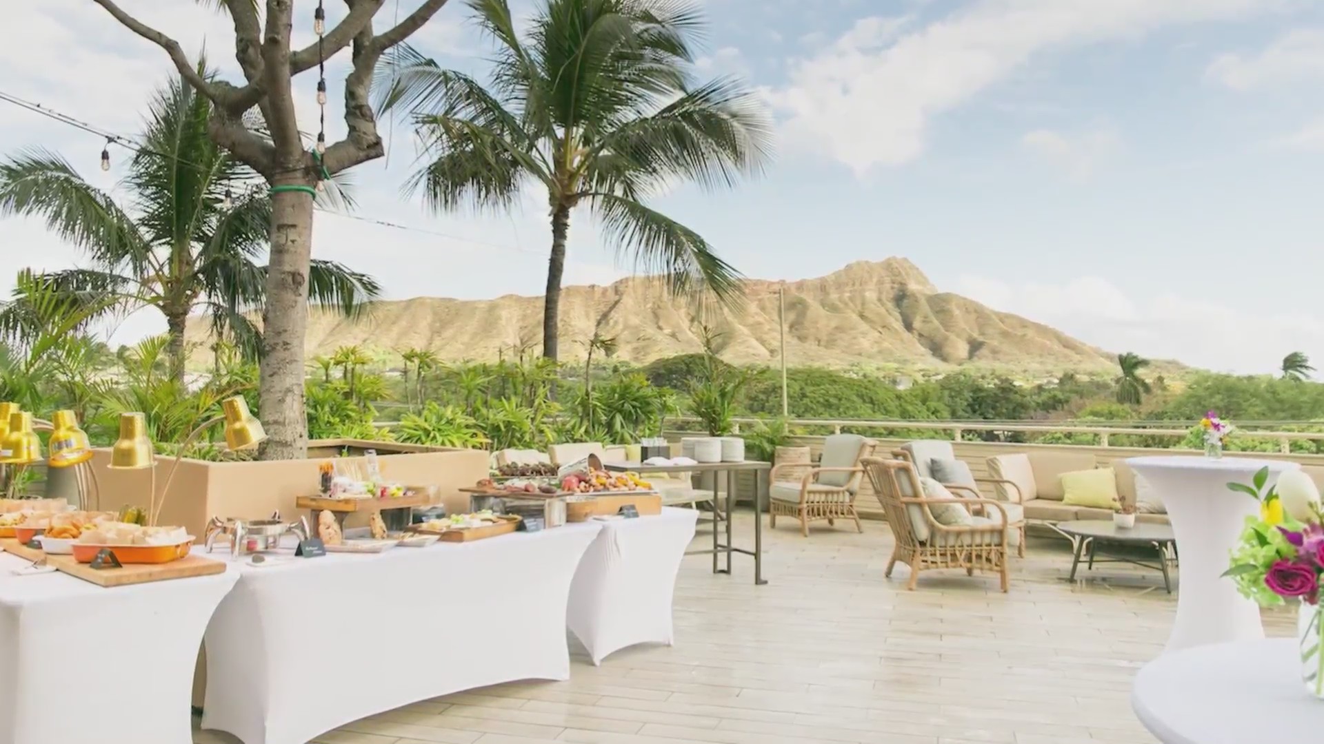 Be vocal about your layout needs. Because the space is indoor-outdoor, you have to account for the weather. Yes, it’s Hawaii, and it’s usually perfect. But "liquid sunshine" (rain) happens. The transition between the room and the lanai is seamless, but you want a plan for where people stand if a quick tropical shower passes through. The staff at DECK are pros at this, though. They’ve seen every kind of weather Waikiki can throw at them.