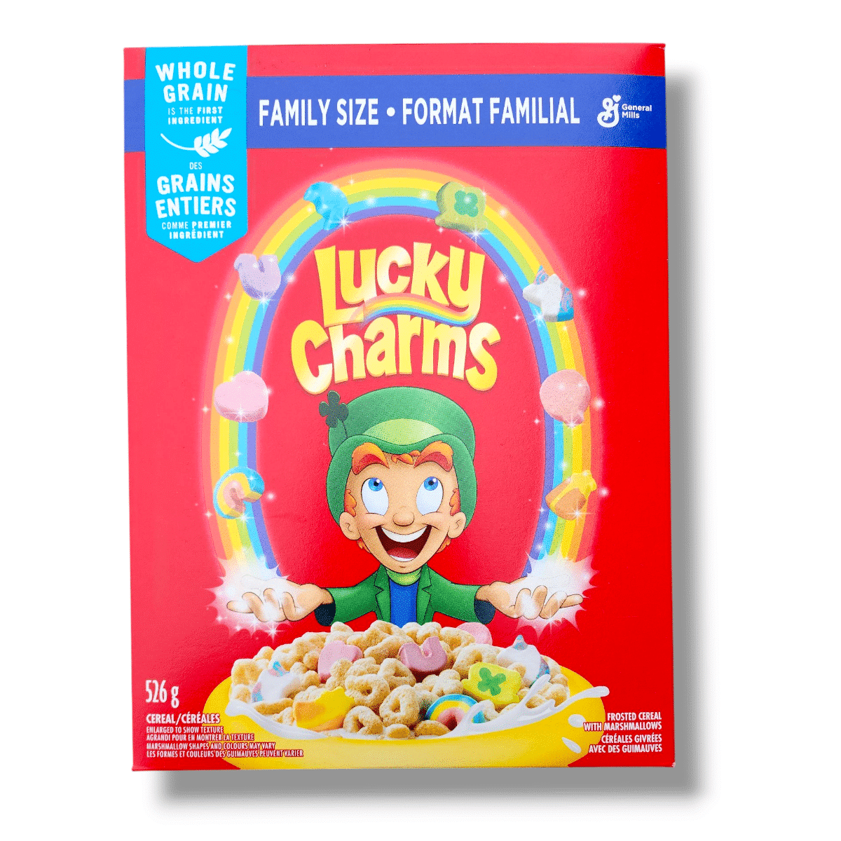 You’re standing in the cereal aisle, staring at that sea of red boxes. It’s overwhelming. You’ve got the standard size, the "large" size, the mega size, and then the one we’re talking about today: Lucky Charms family size. It’s the sweet spot. Honestly, if you aren’t buying the family size, you’re probably overpaying or running out of marshmallows by Tuesday.