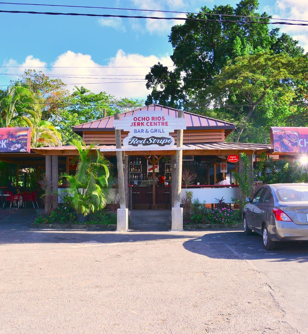 You smell it before you see it. That's the first rule of finding good food in Jamaica. If you're driving down Main Street and your nose picks up that heavy, sweet scent of pimento wood smoke mixed with charred scallions, you've basically arrived. The Ocho Rios Jerk Center Ocho Rios Jamaica isn't some fancy, high-concept bistro. It’s a landmark. It is a sprawling, open-air institution that has survived the rise of massive all-inclusive resorts by doing one thing: sticking to the fire.