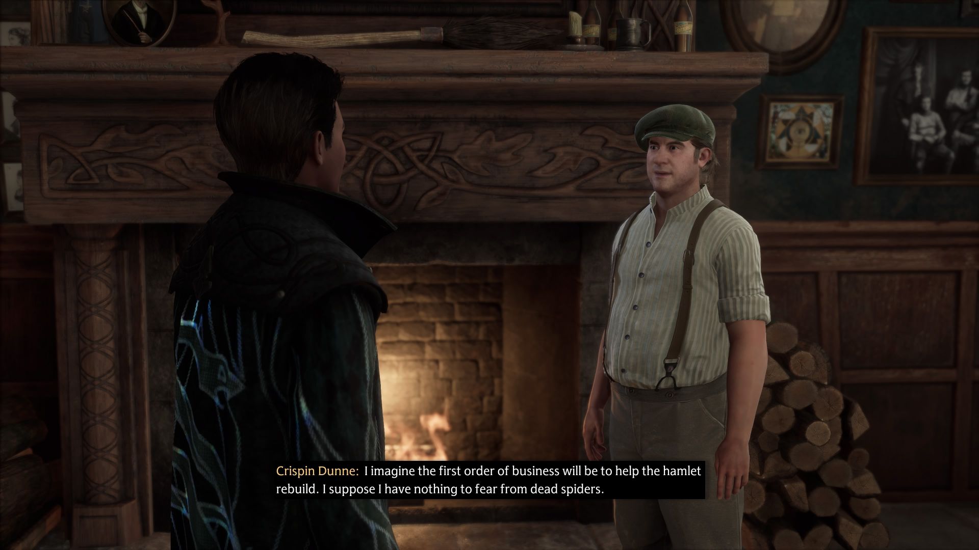 Once the big guy is dead, you need to head back to Hogsmeade. You have a choice here. You can tell Crispin the truth—that Mary was essentially a spider-farming criminal—or you can be nice about it.