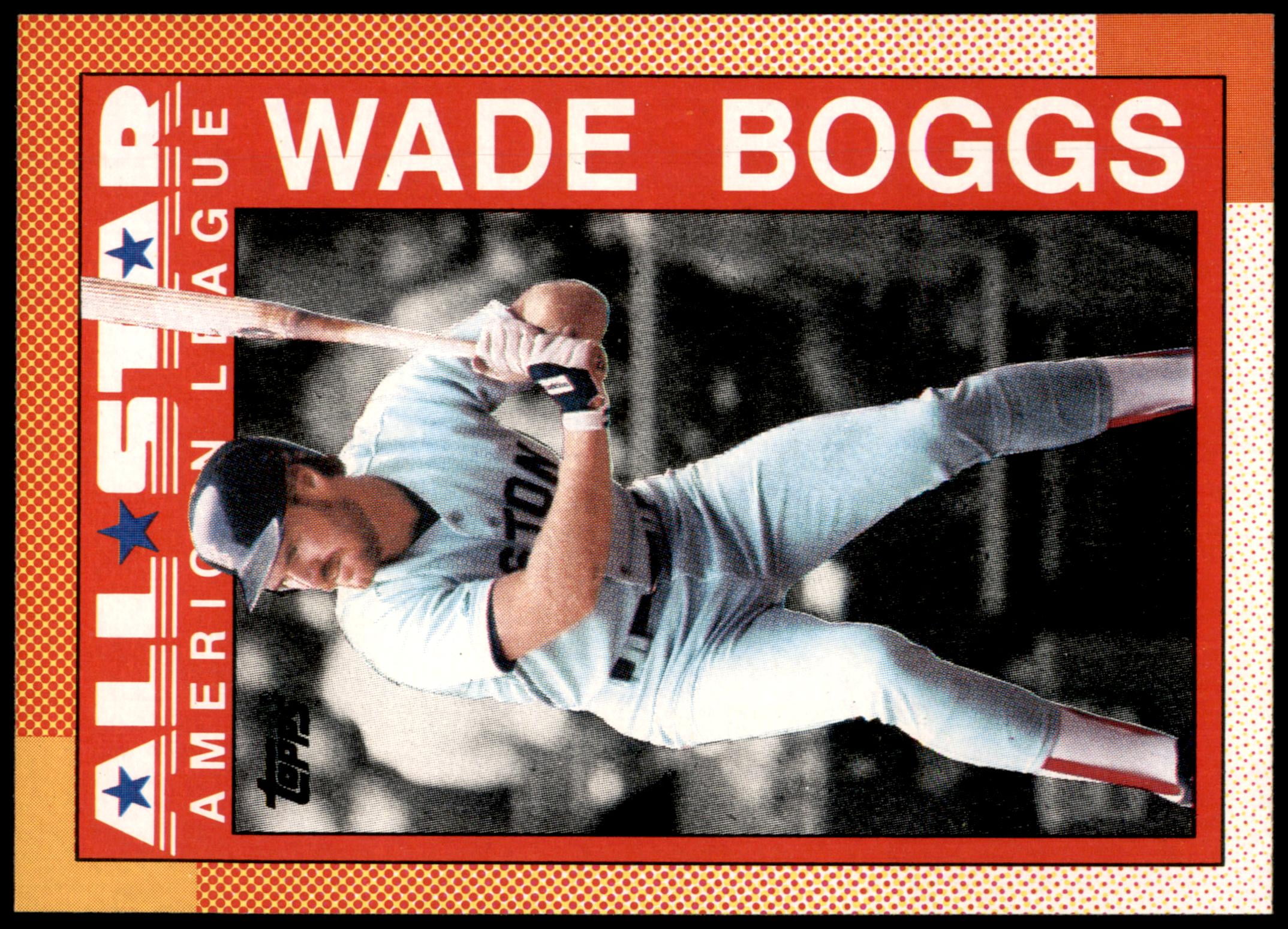Look at the 1987 Topps Wade Boggs closely. The photograph is crisp. Boggs is shown in a classic batting stance, eyes locked in, looking like he’s about to slap a double into the Fenway gap. The "Red Sox" lettering in that bold red script at the bottom? Chef's kiss. It’s a design that handles "edge wear" horribly, which is why finding one with perfect brown borders is actually tougher than you'd think.
