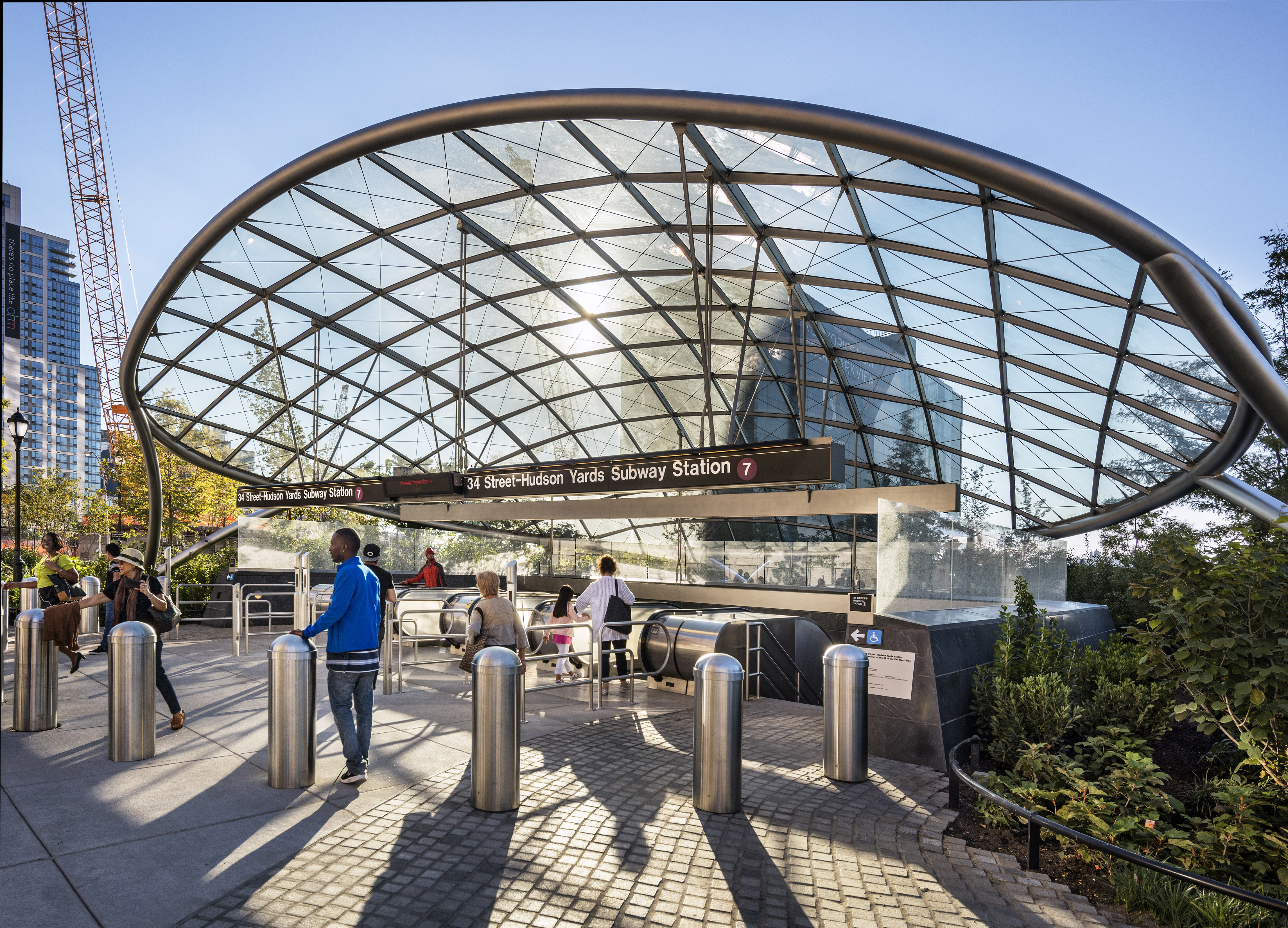 There are two main entrances. The primary one is in the park between 33rd and 34th Streets. It’s a big, glass canopy that looks like a giant bubble emerging from the ground. There’s a secondary entrance at 35th Street, which is usually way less crowded.