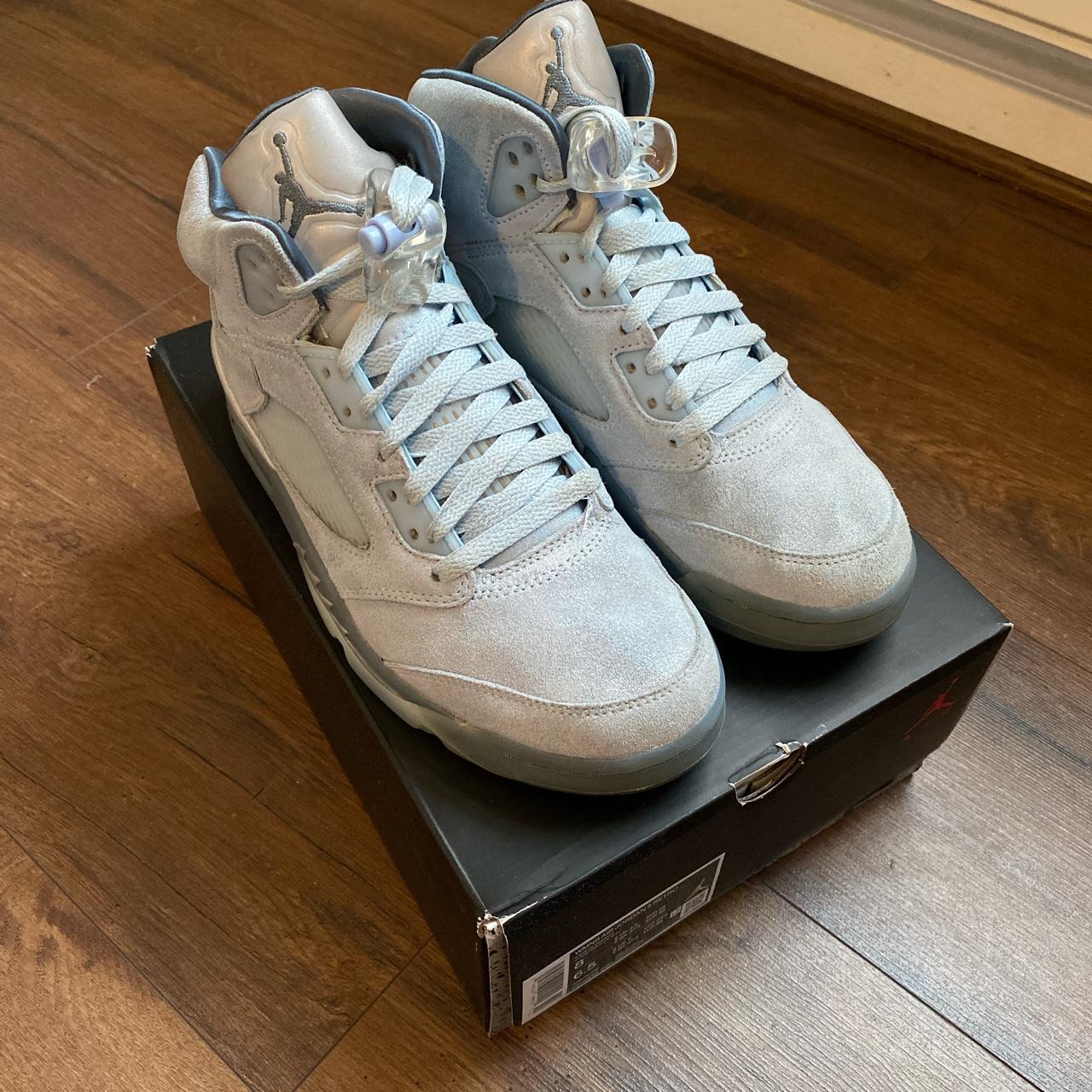 - Storage: Store these with silica packets. The icy blue soles on the Air Jordan 5 Retro Bluebird turn a nasty yellow-green if they are kept in a humid environment or a box that gasses out. Keep them cool and dry to preserve that "frozen" look.