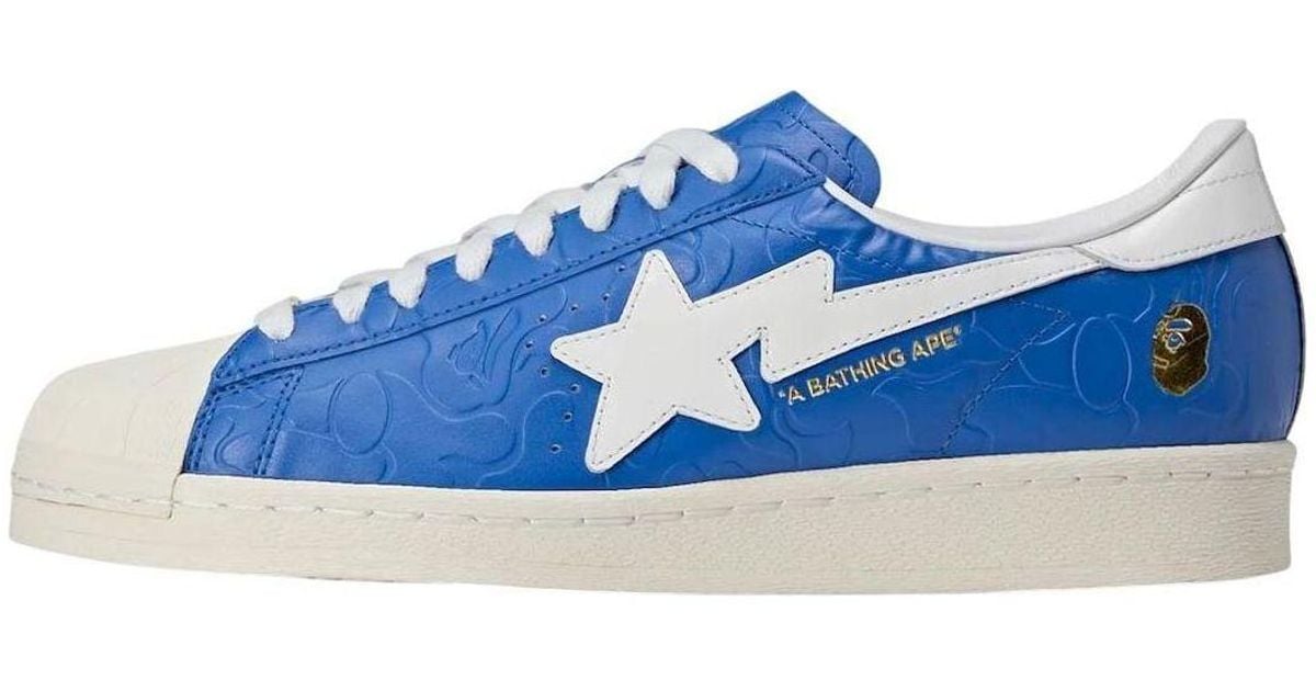 The 80s-inspired silhouette of the Superstar is inherently "blocky." It’s wide. It’s sturdy. This fits the BAPE aesthetic perfectly. BAPE has always favored slightly oversized, baggy silhouettes—think shark hoodies and wide-leg denim. The Superstar anchors that look in a way a slim Gazelle or a Samba just can't. It provides the visual weight needed to balance out a loud outfit.