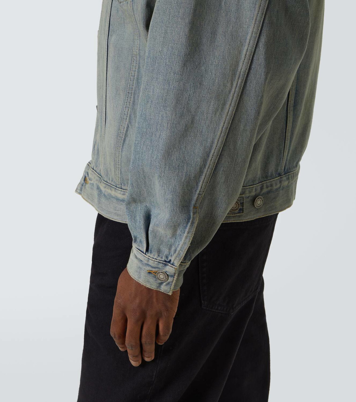 Let's get technical for a second because the construction is where the money is. Standard denim jackets are often "boxy." They hang straight down from the armpit. Saint Laurent uses a slight taper.