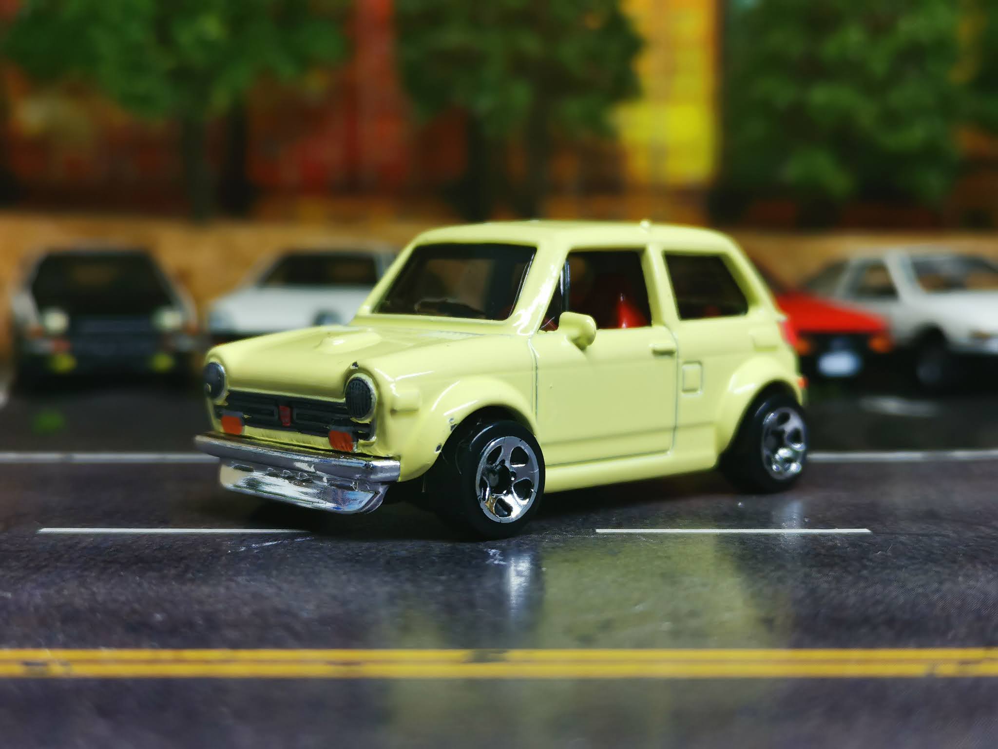 With the Hot Wheels Honda N600, Mattel used a "standard" wheel size which actually makes the car look even smaller and more "custom." It gives it that "stanced" look that is so popular in the JDM community.
