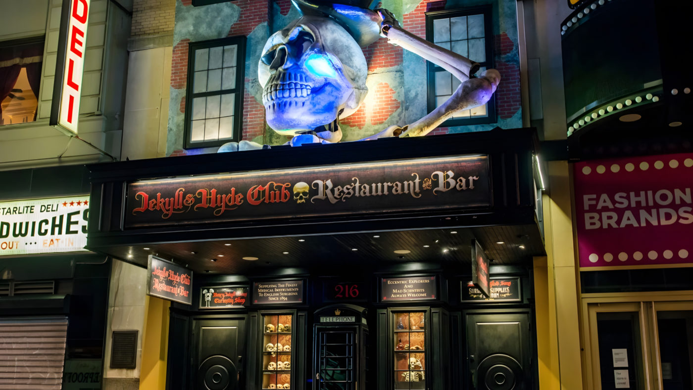 Theme restaurants are usually a bit of a disaster. You know the drill. You pay $25 for a burger that tastes like cardboard just so you can sit in a room that looks like a rainforest or a generic pirate ship. It's gimmicky. It's loud. Mostly, it’s forgettable. But the Jekyll & Hyde Club was different, and honestly, it’s kind of a tragedy that the era of the high-concept, animatronic-heavy dining experience has mostly vanished from Manhattan.