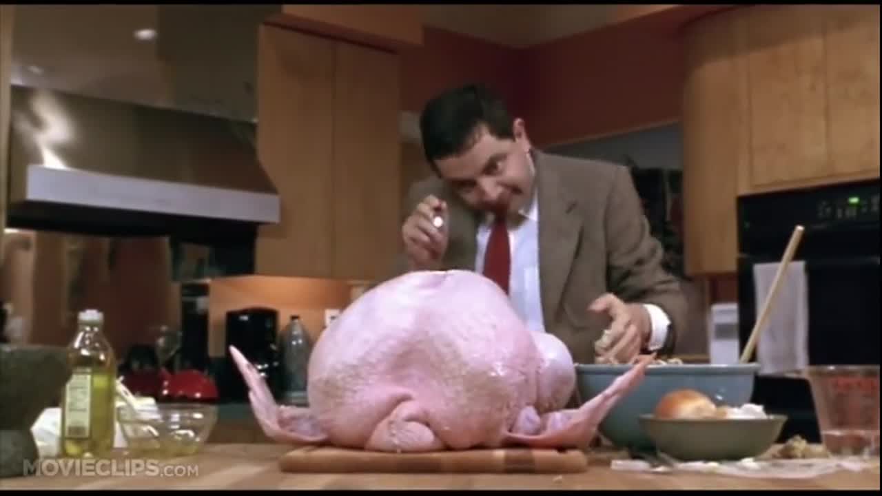 If you want to re-watch the scene, don't just look for the 30-second clip. Watch the full build-up. The genius of the Mr Bean turkey head gag is in the pacing. It’s the way he meticulously prepares the stuffing, the way he realizes his watch is missing, and the mounting dread as he realizes he's trapped.